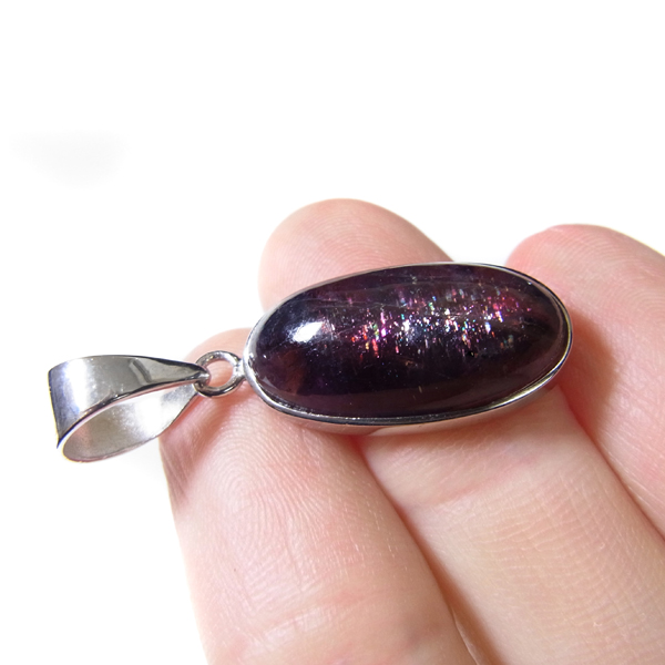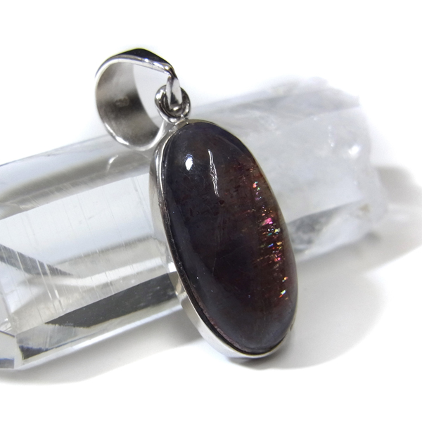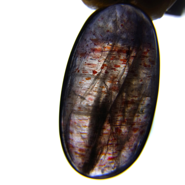 ブラッドショットアイオライトはアイオライトとサンストーンの中間石で鉄分を多く含んでキラキラと輝く石です。インドの限られた地域でしか採れないことから、ブラッドショットアイオライトそのものがレアストーンで大変希少です。夜空の流星群を詰め込んだような色彩の表情を見せてくれます。