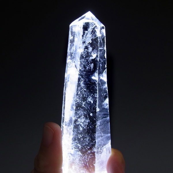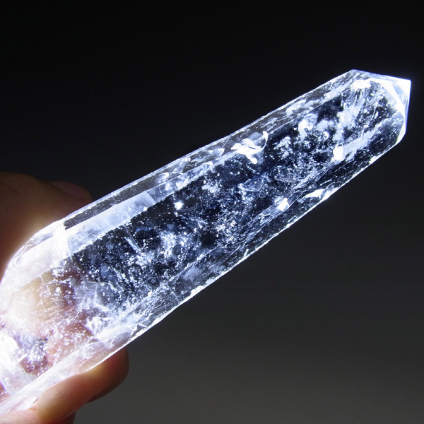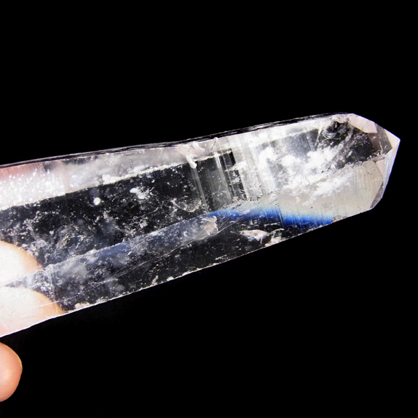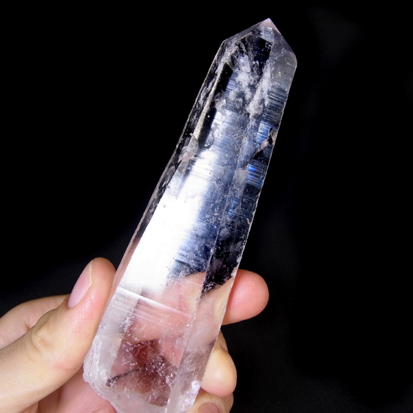 内モンゴル産のエンジェルラダークォーツポイントです。研磨なしのナチュラル水晶ポイントでライトを照らすと青白いエンジェルラダーが確認できました。手に握れるぐらいの大き目の水晶ポイント、透明度もありますので水晶内部の結晶も見ることができます。長い年月を経てできたしっかりとした水晶ポイントです。