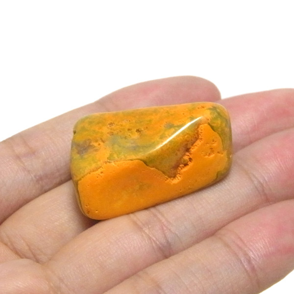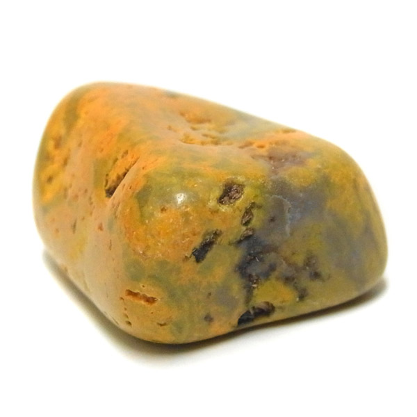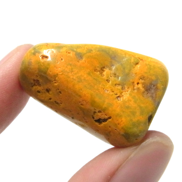 インドネシア産のバンブルビージャスパー、タンブルです。発色とグラデーションが美しいものを選りすぐりました。バンブルビージャスパー、別名エクリプスとも呼ばれます。「バンブルビー」とは、ミツバチの一種のマルハナバチのことで、黒地に蛍光色のイエローの模様からこの名前がつけられました。また、「エクリプス」とは、皆既日食を意味しています。主に硫黄がビビッドな発色を生み出すと言われ、クォーツと他の微量ミネラルで構成されています。世界的にもレアストーンとされていますが、特に日本市場での流通量は非常に少なく、入手困難な石なのです。もし気に入られた場合は、お早めにご購入されることをオススメします。所々に穴があり、ルーペで覗いてみると小さな結晶が見られます。