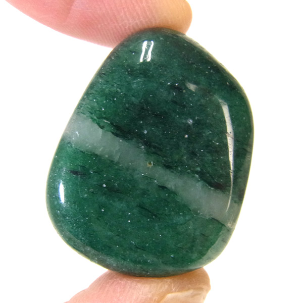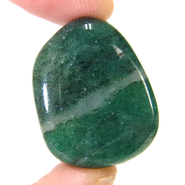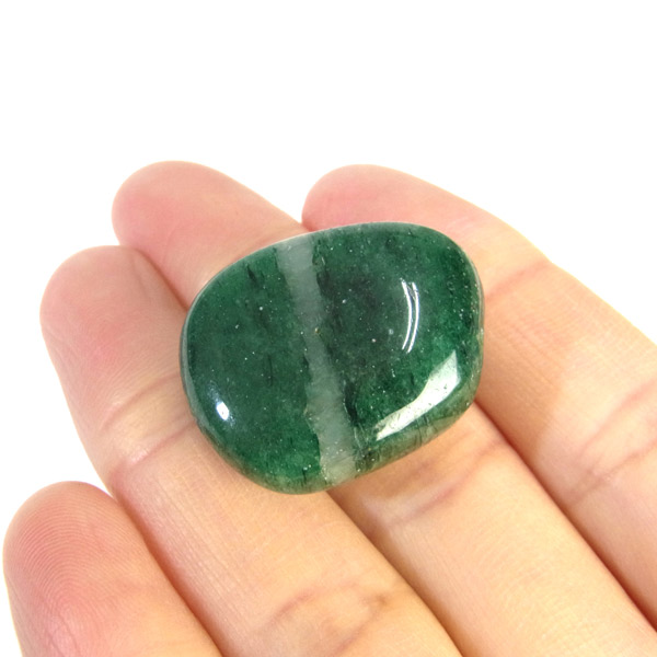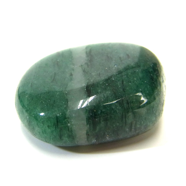 南アフリカ産のフックサイト、タンブルです。フックサイト、発音によりフクサイト、またはクロムマイカと呼ばれております。マイカ(雲母)グループの中のモスコバイト(白雲母)の変種で緑色になったものがフックサイトです。和名はクロム白雲母でクロムにより緑色に発色しております。写真では分かりずらいですが、雲母の粒子で表面はキラキラとしております。