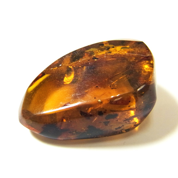 メキシコ産のアンバー、タンブルです。アンバーは和名で琥珀と呼びますので、琥珀という名前の方が馴染みがあるかもしれません。アンバーは古代の樹木の樹脂が3000万年以上の時を経て化石となったもので、古くから宝飾品などに使われてきました。塊状の原石を磨くと艶やかで綺麗な表情が見られます。色が綺麗なことはもちろん光を通しても綺麗で美しいです。