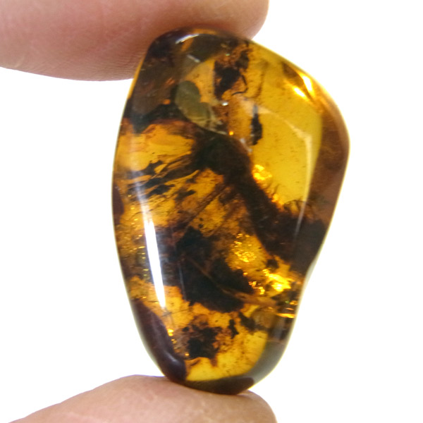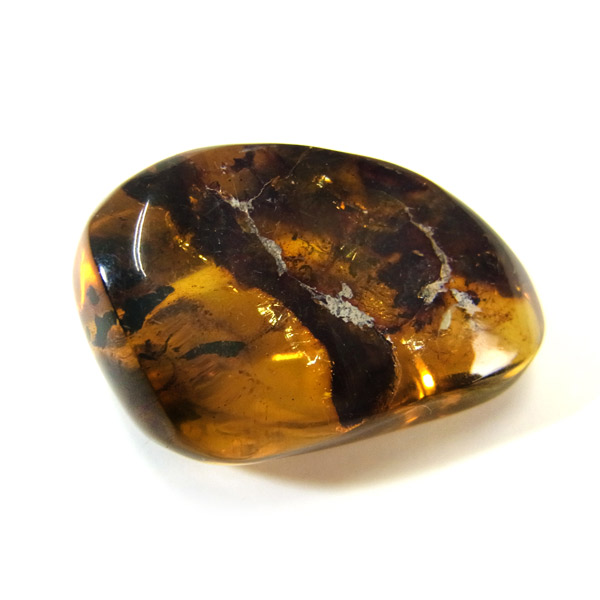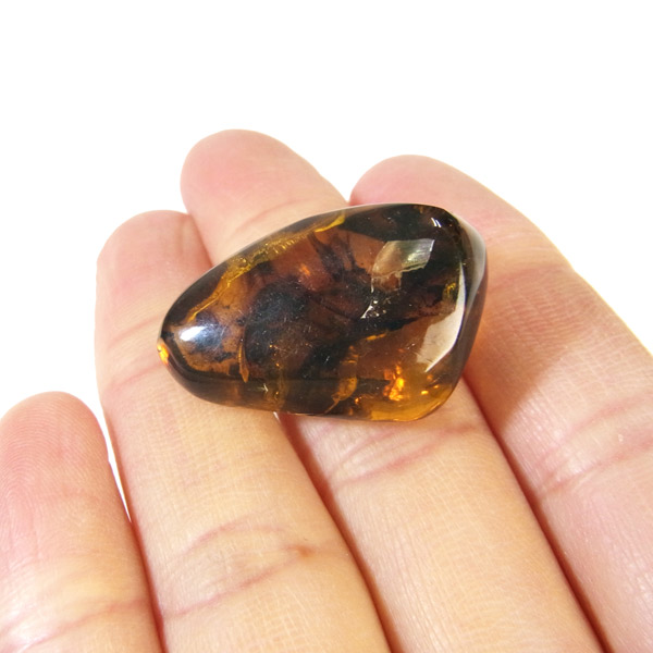 メキシコ産のアンバー、タンブルです。アンバーは和名で琥珀と呼びますので、琥珀という名前の方が馴染みがあるかもしれません。アンバーは古代の樹木の樹脂が3000万年以上の時を経て化石となったもので、古くから宝飾品などに使われてきました。塊状の原石を磨くと艶やかで綺麗な表情が見られます。色が綺麗なことはもちろん光を通しても綺麗で美しいです。