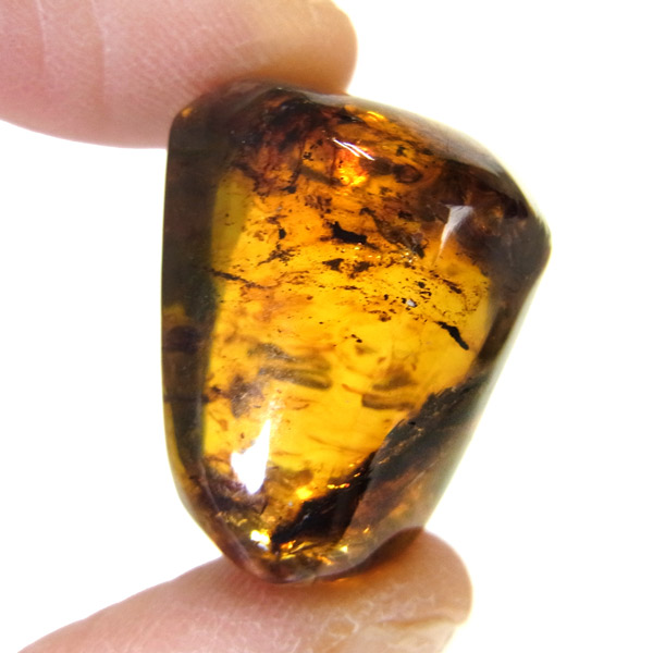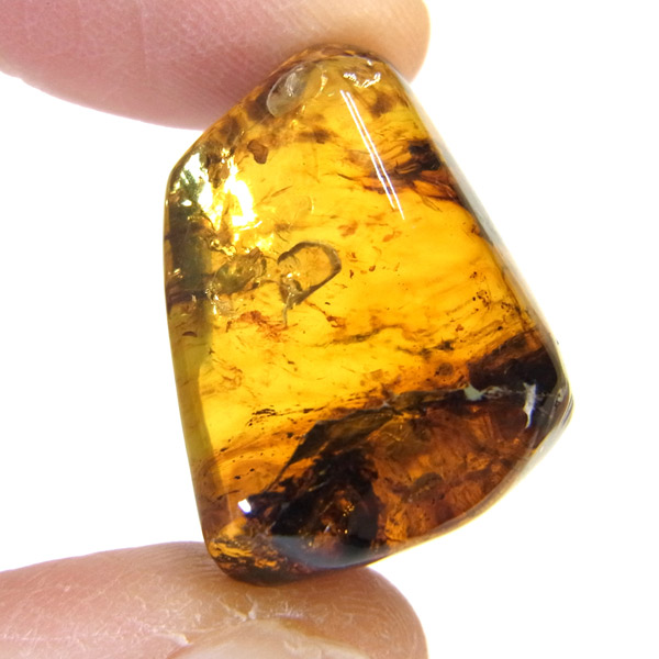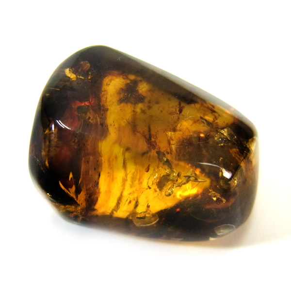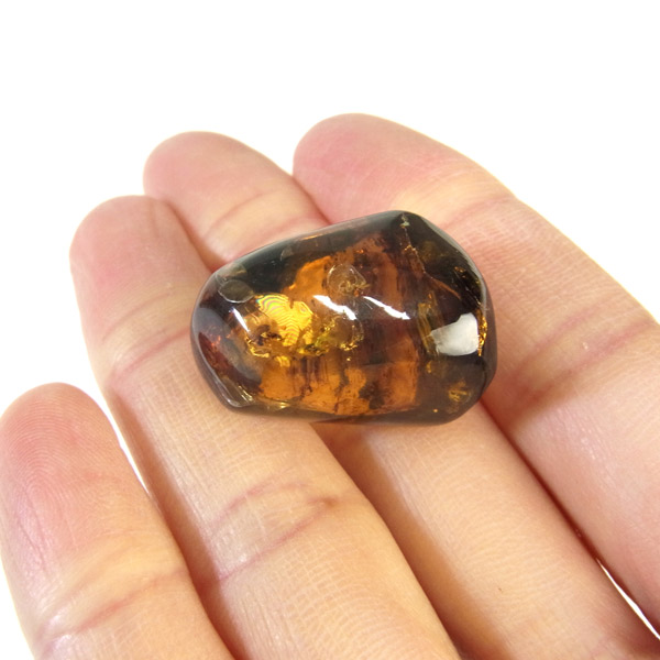 メキシコ産のアンバー、タンブルです。アンバーは和名で琥珀と呼びますので、琥珀という名前の方が馴染みがあるかもしれません。アンバーは古代の樹木の樹脂が3000万年以上の時を経て化石となったもので、古くから宝飾品などに使われてきました。塊状の原石を磨くと艶やかで綺麗な表情が見られます。色が綺麗なことはもちろん光を通しても綺麗で美しいです。