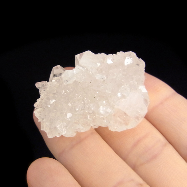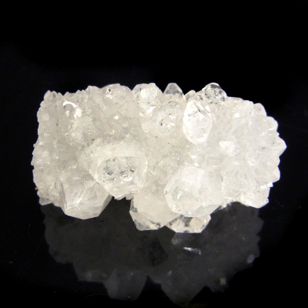 インド、プネー産のアポフィライト原石です。 アポフィライトは、柱状や正方錘状の結晶を持ち、ひとつひとつの結晶が複雑に入り組んだ群晶が水晶とは違う神々しい輝きを魅せてくれます。透明度が非常に高くキラキラ輝き神秘的でとてもきれいです。