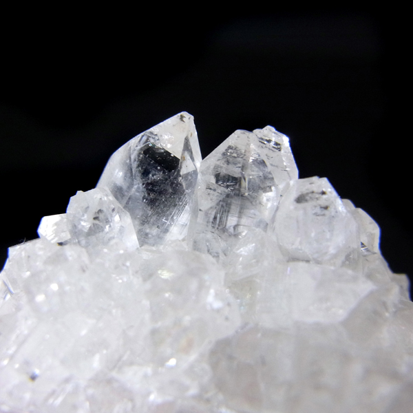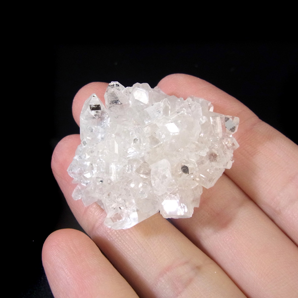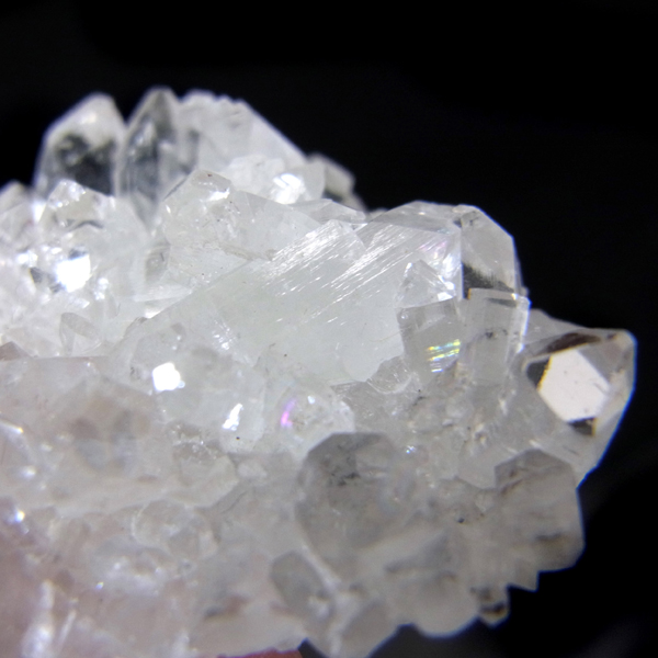 インド、プネー産のアポフィライト原石です。 アポフィライトは、柱状や正方錘状の結晶を持ち、ひとつひとつの結晶が複雑に入り組んだ群晶が水晶とは違う神々しい輝きを魅せてくれます。透明度が非常に高くキラキラ輝き神秘的でとてもきれいです。