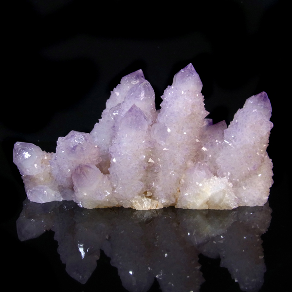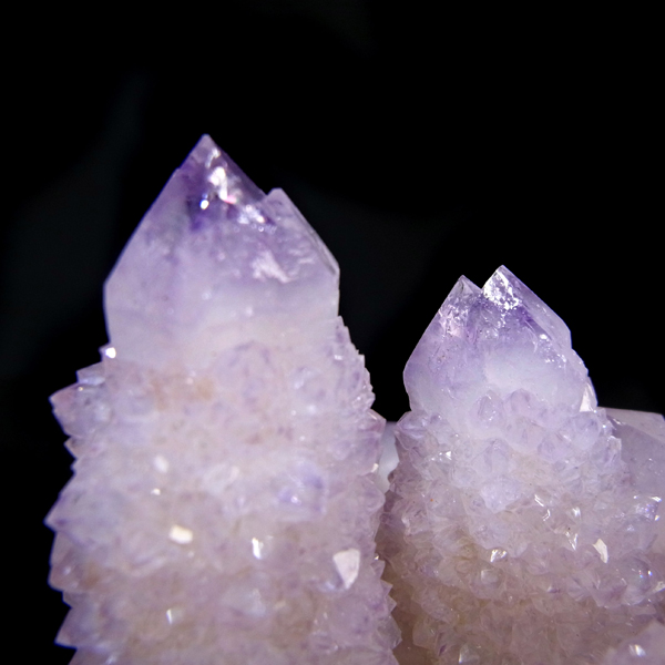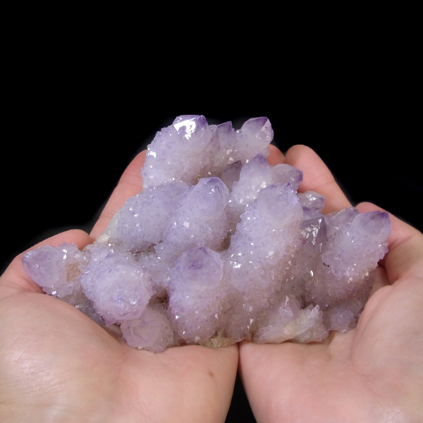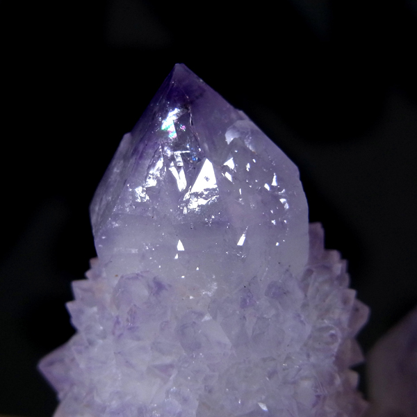 カクタスアメジストは、細かな結晶に包まれるように、先端にポイントが伸びている特徴的なアメジストです。カクタスとは「サボテン」という意味で、見た目がサボテンに似ていることからこの名前がつけられ、サボテン水晶とも言われています。また、古来から精霊の宿る聖なる水晶とも崇められていて、スピリットクォーツとも言われています。細かな淡い結晶で形成されており、光を当てるとキラキラと神秘的な輝きを放ちます。