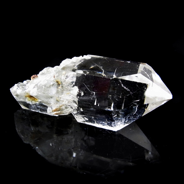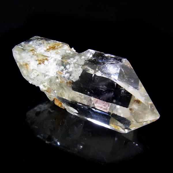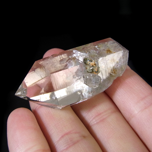 イタリア・フォルマッツァ産のモンブランクォーツ原石ポイントです。人々の寄り付かない澄んだ大自然の中で成長したモンブラン水晶でその透明度は大変高く美しいです。こちらの結晶は水晶の中に水晶が入っている貫入が見られます。奥の方にきれいなレインボーが確認できます。ヨーロッパを代表するアルプス山脈は、フランス・スイス・ドイツ・イタリア・オーストリアの広大な国々をまたぐ、東西1000km、南北150kmにも及ぶ大山脈。そのアルプスの中でも最高峰のモンブラン(標高4810m)で採掘された水晶です。モンブランはフランス・イタリア国境にそびえ、美しい水晶の産地としても知られており、その地の名を冠して「モンブラン水晶」と呼ばれています。このモンブラン水晶は、標高が高いことから機械を持ち込むことが出来ないため、登山家により一つ一つ手掘りで採掘されます。そのため、大変流通量の少ない、稀少な水晶です。