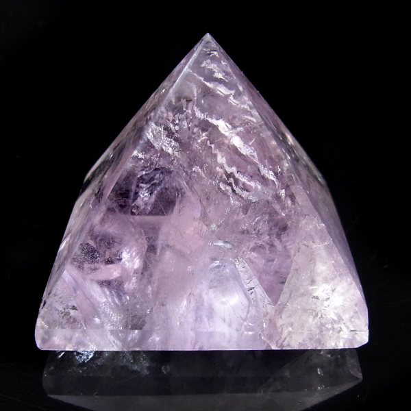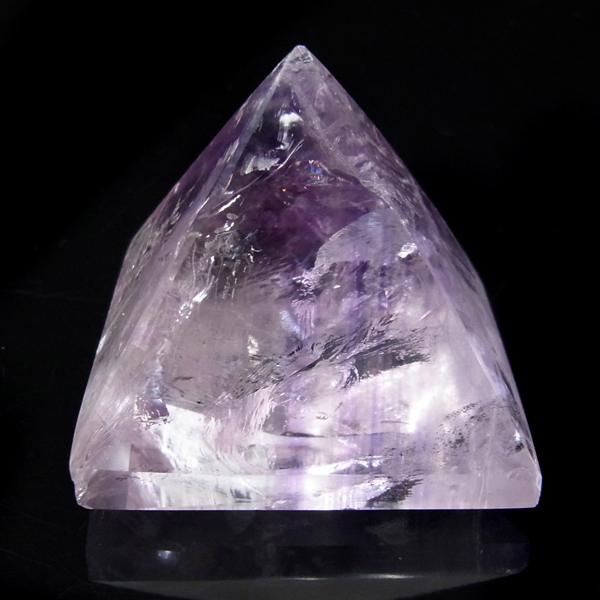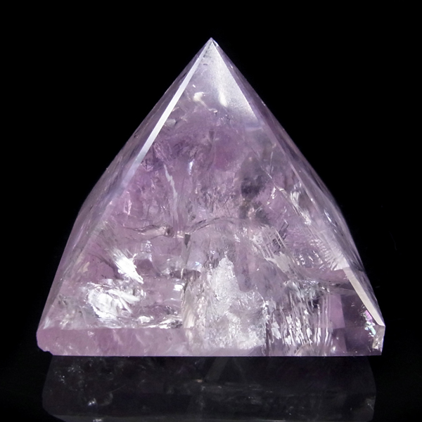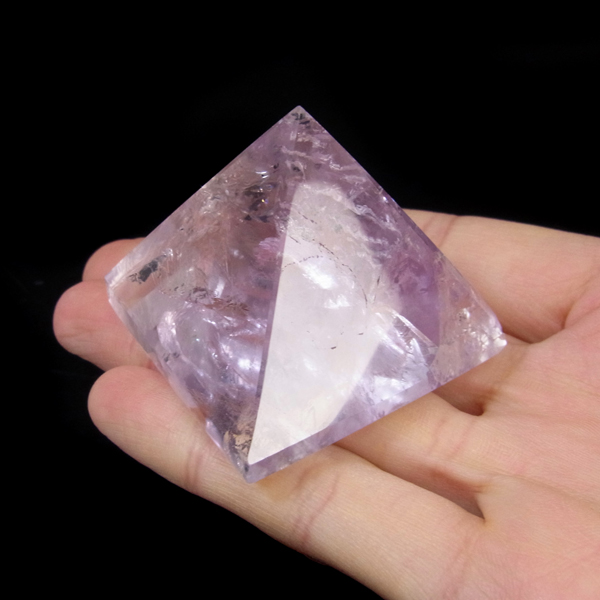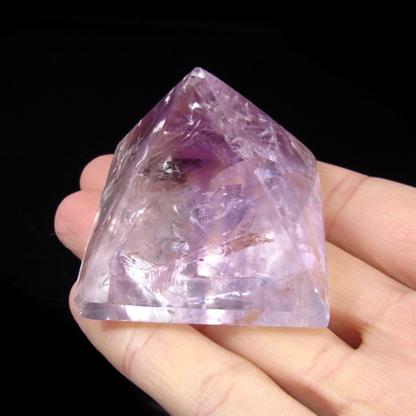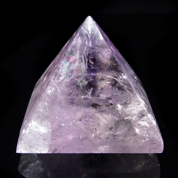 ブラジル産のアメジストをピラミッド型に研磨したアイテムです。澄んだクリアなアメジストで内部の結晶まで見ることができ、とてもきれいで癒されます。レインボーも確認できました。
