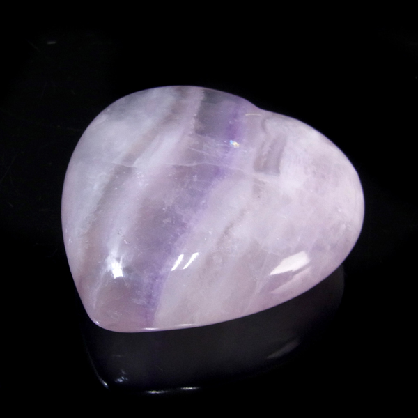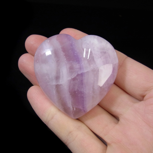 チャイナ産フローライトのハート型ペーパーウェイトです。フローライトの原石をハート型に研磨したアイテムです。優しい色合いのパープルとホワイトクリアのフローライト。結晶の層がとてもきれいでハート型がかわいいフローライトのアイテムです。