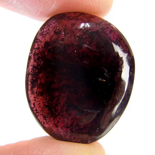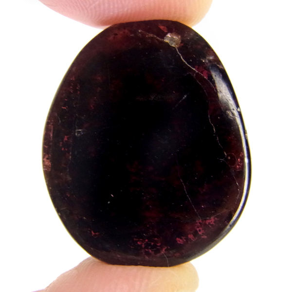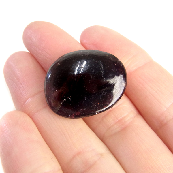 インド産ロードライトガーネット、タンブルです。ロードライトガーネットは紫帯びた赤のワインレッド色が非常に美しいガーネットのことです。アルマンディン(鉄礬柘榴石)とパイロープ(苦礬柘榴石)の混合ガーネットであり、貴重で高価、そして数少ないパワーストーンであることから、人気がとても高いストーンです。光に透かすとよりきれいな色彩が現れます。