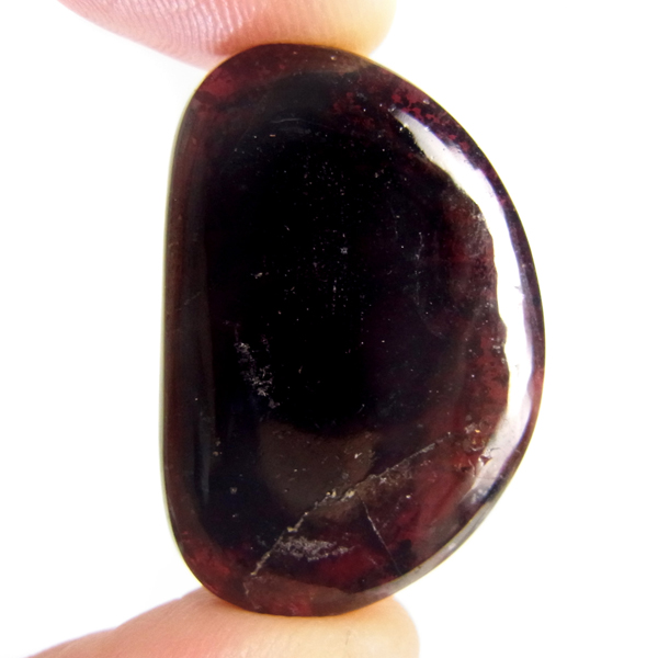 インド産ロードライトガーネット、タンブルです。ロードライトガーネットは紫帯びた赤のワインレッド色が非常に美しいガーネットのことです。アルマンディン(鉄礬柘榴石)とパイロープ(苦礬柘榴石)の混合ガーネットであり、貴重で高価、そして数少ないパワーストーンであることから、人気がとても高いストーンです。光に透かすとよりきれいな色彩が現れます。
