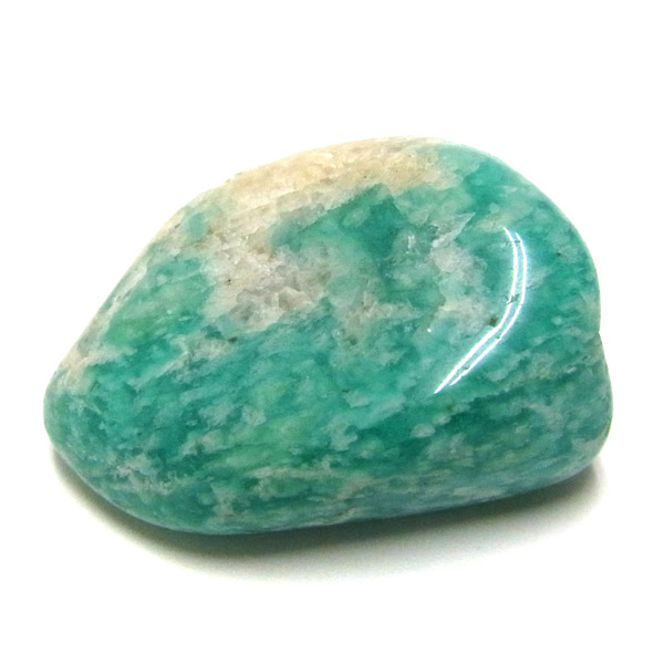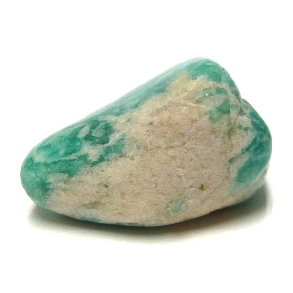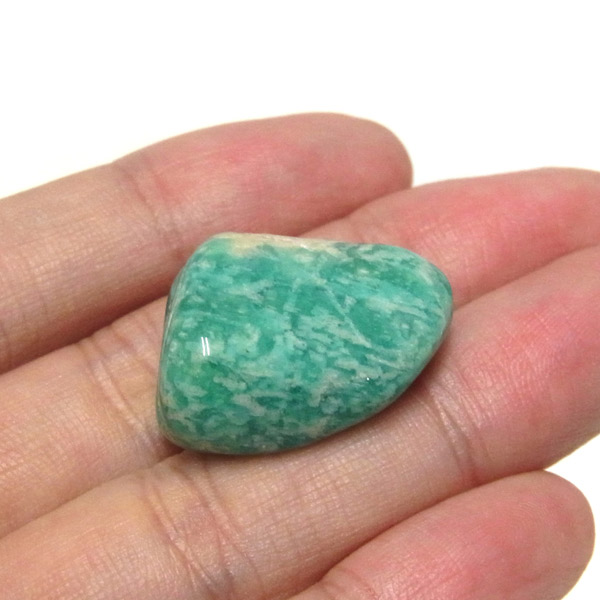 ロシア産のアマゾナイト、タンブルです。アマゾナイトといえば、世界中で広く産地が分布しています。 産地により特徴も様々で、一般的にはロシア産のアマゾナイトは、グリーンに霜を降ったような白の発色が美しいことが特徴です。 ミントをイメージする清々しいグリーンが大変人気の石です。