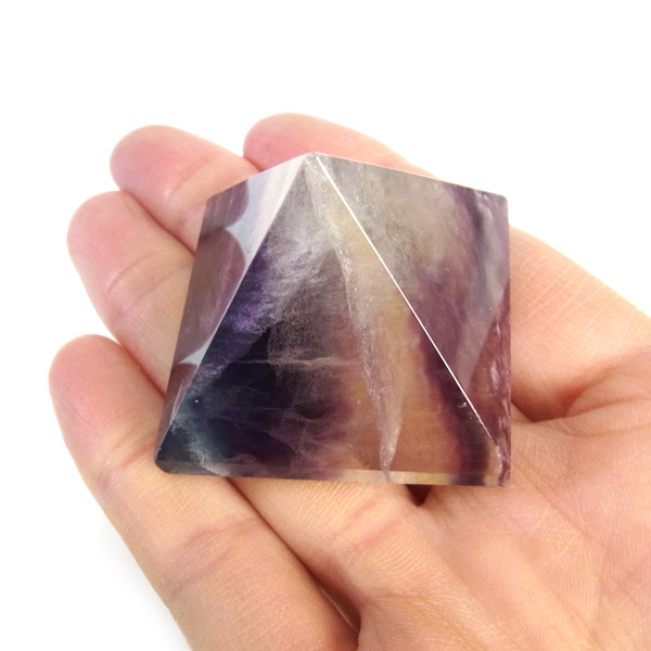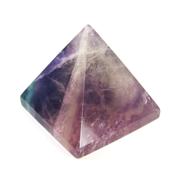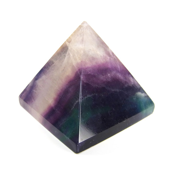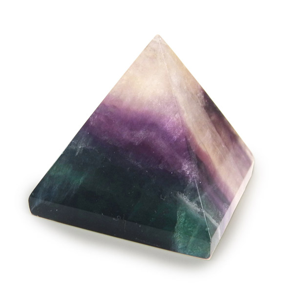 チャイナ産のフローライトをピラミッド型に研磨したアイテムです。澄んだクリアなフローライトで内部の結晶まで見ることができ、とてもきれいで癒されます。複雑な色彩が神秘的で面白い表情を見せてくれます。 ピラミッド型は宇宙と深い関係があるとされる形です。心身のバランスの安定をはかり、潜在能力を高めてくれます。先端は宇宙のエネルギーを集めているといわれています。