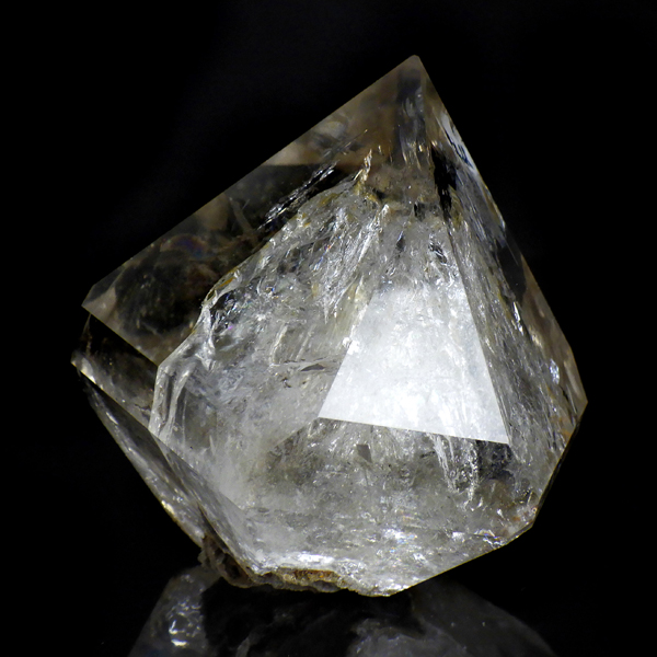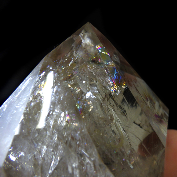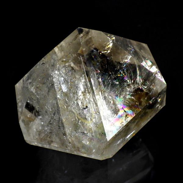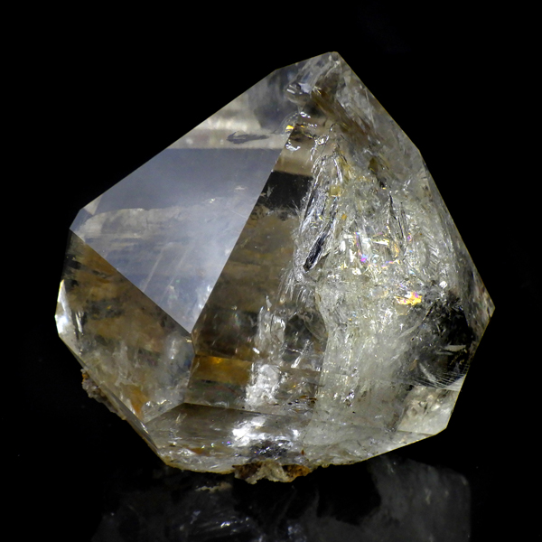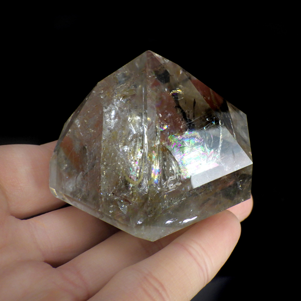 大きなハーキマーダイヤモンド原石です。ハーキマーダイヤモンドはアメリカ、ニューヨーク州、ハーキマー地区でしか採掘されないダイヤのような特別な水晶のクリスタルです。ハーキマーダイヤモンドは掘り出された時から美しくカットされたような形をしています。まるでダイヤモンドのように力強い光沢感と輝き透明感を兼ね備えているのが特長です。母岩の空洞の中で成長し、結晶になるため多くは大きくは成長しません。稀に見つかる大きな空洞で成長したレア中のレアのハーキマーダイヤモンド。抜群の透明度、レインボーもどの角度からもたくさん見られ、圧巻の美しさです。ほんのりとスモーキーカラーをしています。キラキラと輝くその姿は、ダイヤモンドのようで、息を呑むほど素晴らしい輝きとエネルギーにに満ちています。