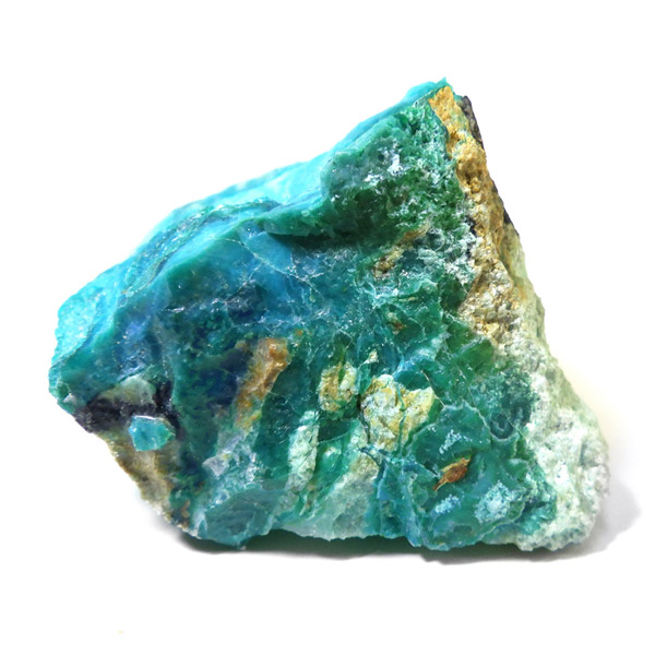 アメリカ・アリゾナ州産のクリソコラ原石です。青とも緑とも言えない爽やかなカラーのクリソコラです。成分が珪酸塩である為、珪孔雀石と呼ばれています。原石硬度は低いというものの鮮やかなブルーは人気の高い鉱物の一つです。