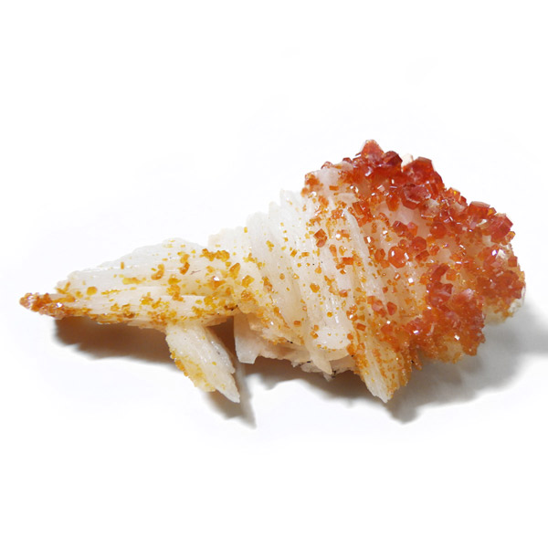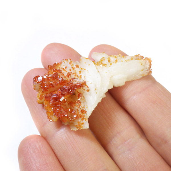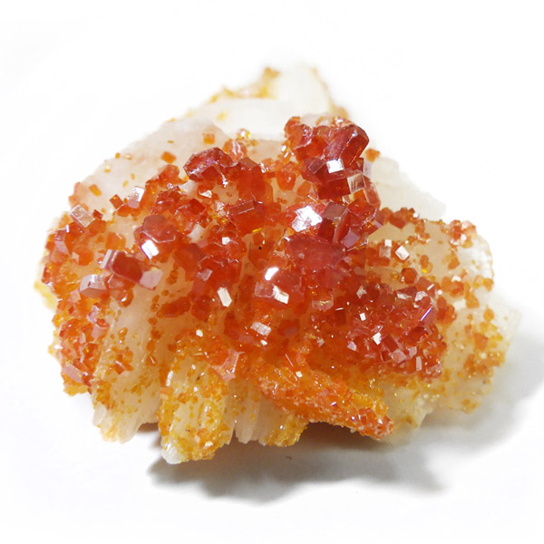 モロッコ産バナジナイト原石です。非常に高品質な結晶を有しています。バナジナイトの中でも明るいオレンジ色の結晶で結晶の粒が細かい逸品。美しい六角板状の結晶は、艶やかな表面から光を非常によく反射させ、キラキラと輝き大変魅力的です。