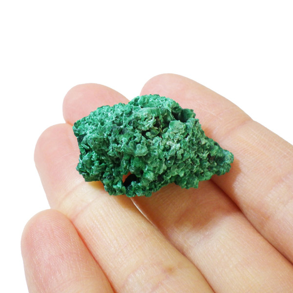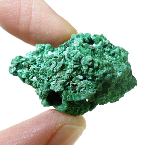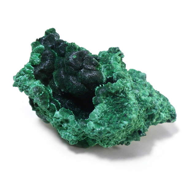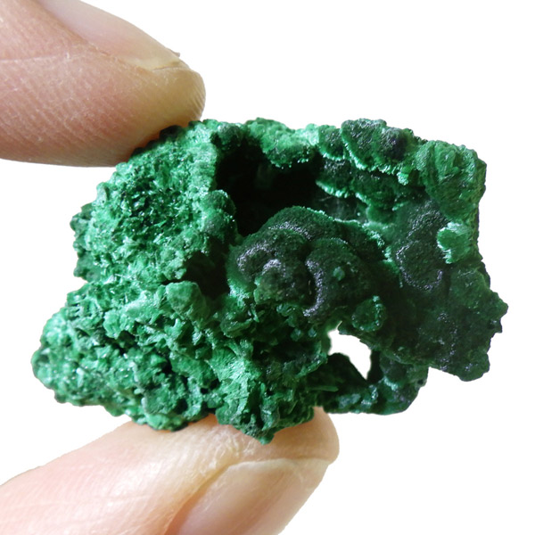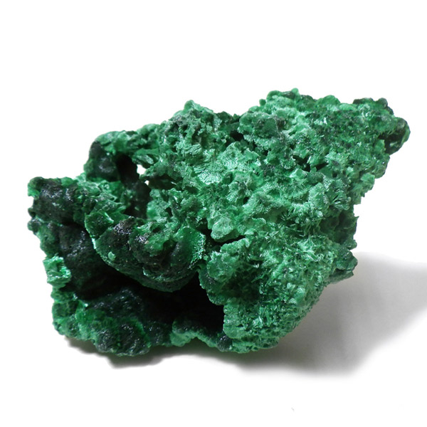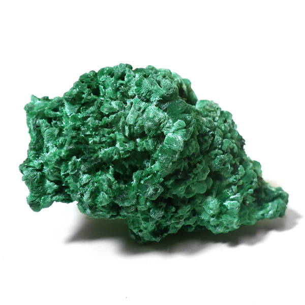 コンゴ産のマラカイト原石です。繊維状の結晶が集まった美しい一品で、ベルベットのような光沢があります。艶やかに光るきれいなグリーンで、一見脆そうに見えますが触ってみるとしっかりした結晶です。