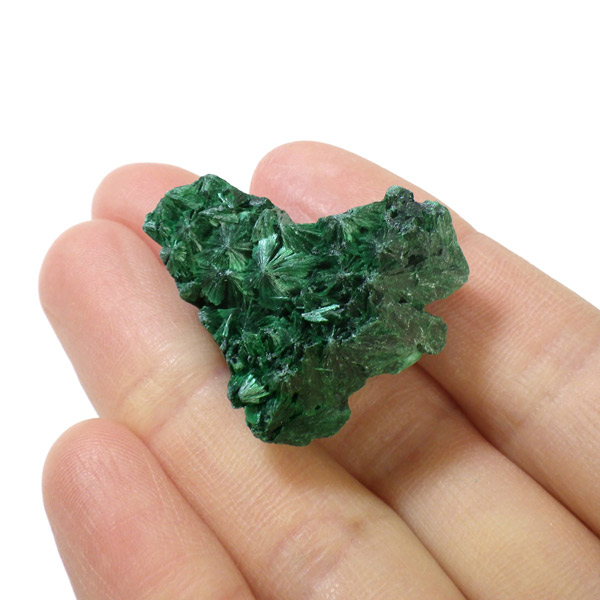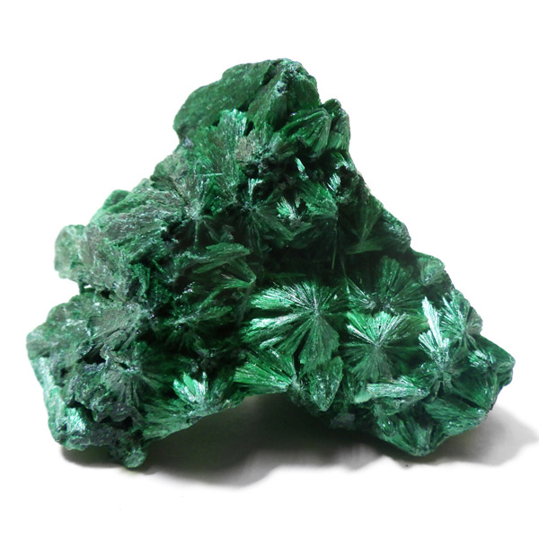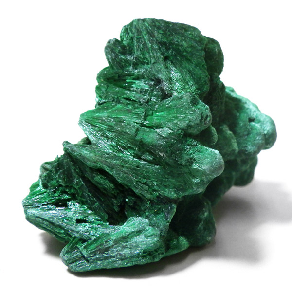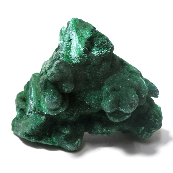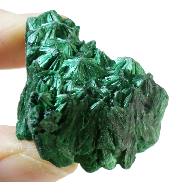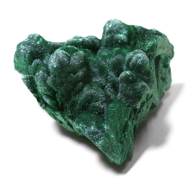 コンゴ産のマラカイト原石です。繊維状の結晶が集まった美しい一品で、ベルベットのような光沢があります。艶やかに光るきれいなグリーンで、一見脆そうに見えますが触ってみるとしっかりした結晶です。