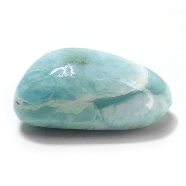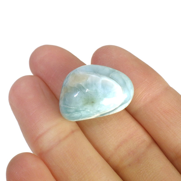 ドミニカ共和国産のラリマー、タンブルです。三大ヒーリングストーンに数えられるほど美しいラリマー、美しいカリブ海のような色合いのブルーとホワイトの模様がきれいに入っています。アクセサリーになるようなハイグレードのラリマーで撮影中に手に触れるだけでパワーを感じられました。1つでも十分癒されるのですが、複数個揃えられると気持ちが随分上がると思います。今のストレス社会には癒しが必要だと思いますので、この出会いに高品質ラリマーを是非いかがでしょうか。