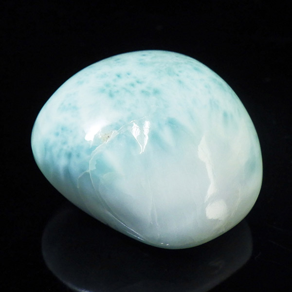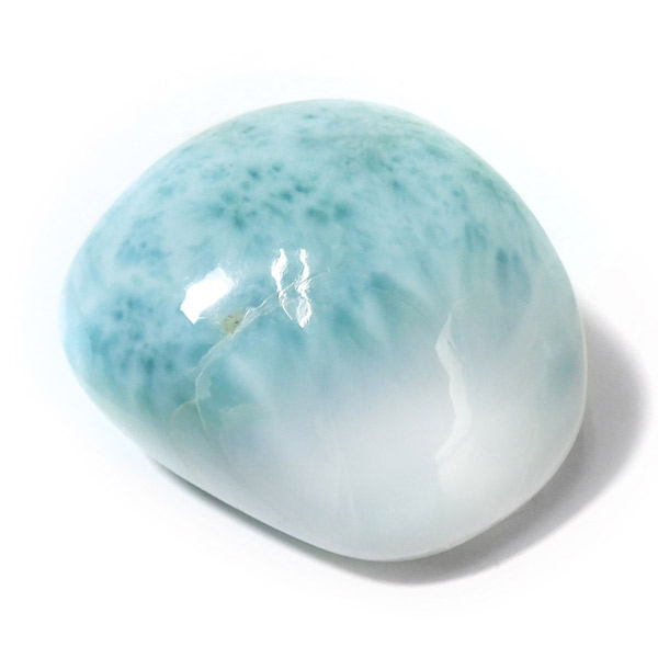 ドミニカ共和国産のラリマー、タンブルです。三大ヒーリングストーンに数えられるほど美しいラリマー、美しいカリブ海のような色合いのブルーとホワイトの模様がきれいに入っています。アクセサリーになるようなハイグレードのラリマーで撮影中に手に触れるだけでパワーを感じられました。1つでも十分癒されるのですが、複数個揃えられると気持ちが随分上がると思います。今のストレス社会には癒しが必要だと思いますので、この出会いに高品質ラリマーを是非いかがでしょうか。