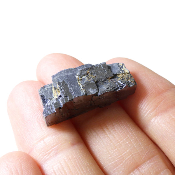 アメリカ・ミシガン州産のガレーナ原石です。ガレーナの和名は「方鉛鉱」。その名の通り立方体状に結晶する石で、鉛の鉱石としては他にはないと言われています。工業用の鉛の原料となる石で、その中でもとびきり美しい物は、観賞用となります。鉛を含むため、ずっしりと重く、階段のような表面が特徴です。