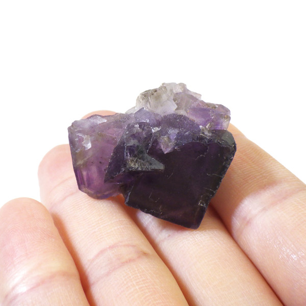 メキシコ産のパープルフローライト原石です。結晶の形が細かく、表面にびっしりと幾何学模様が刻まれています。先端に行く程、パープルが濃くなっていくのが特徴的。光にかざすと半透明で幻想的です。