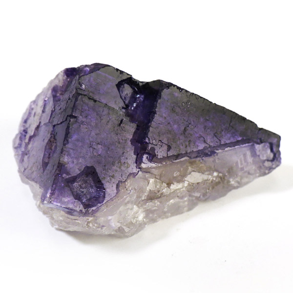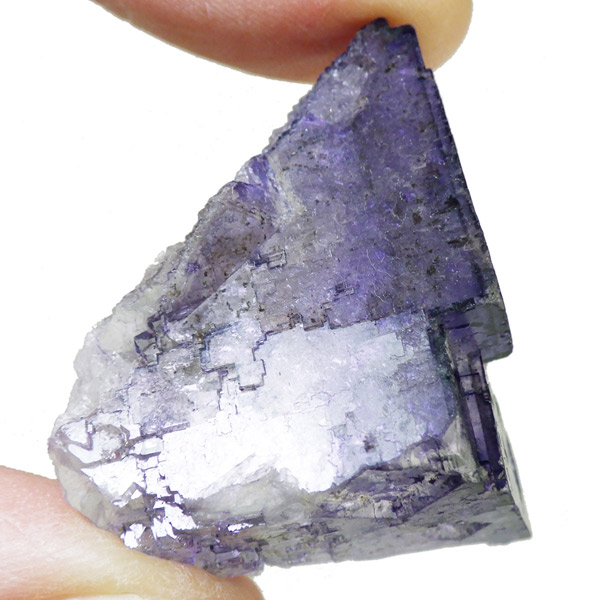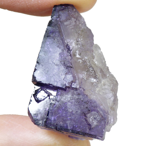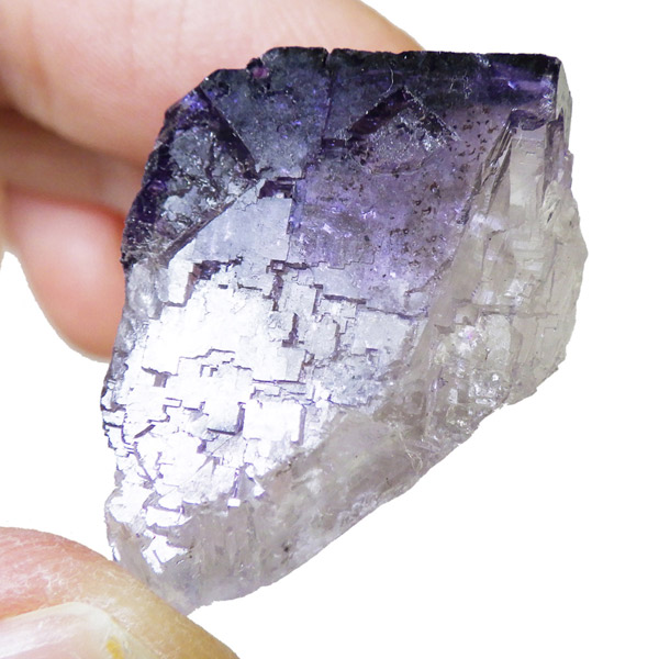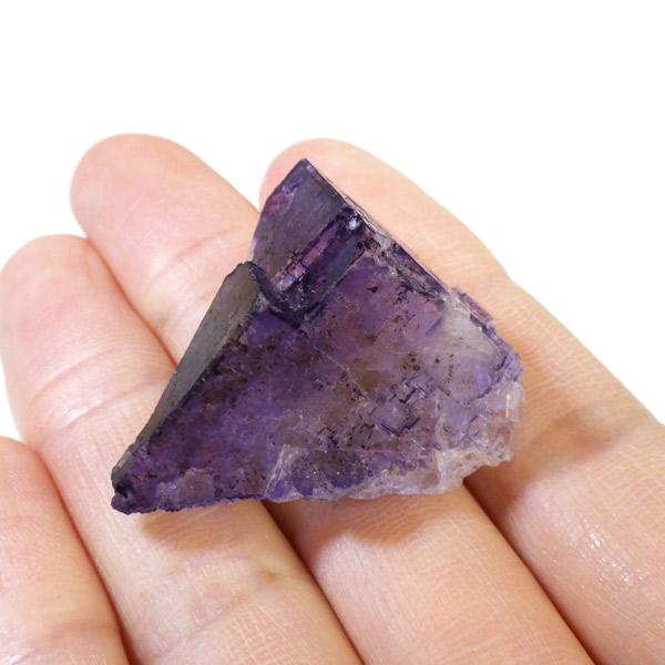 メキシコ産のパープルフローライト原石です。結晶の形が細かく、表面にびっしりと幾何学模様が刻まれています。先端に行く程、パープルが濃くなっていくのが特徴的。光にかざすと半透明で幻想的です。