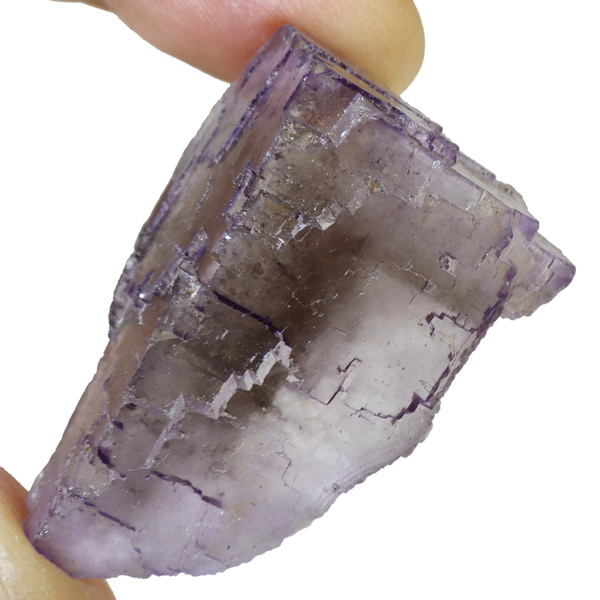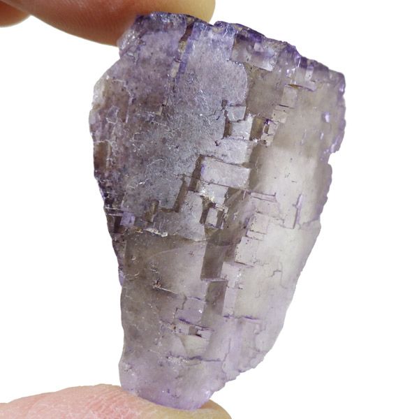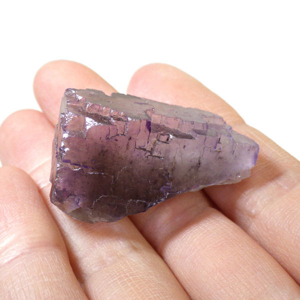 メキシコ産のパープルフローライト原石です。結晶の形が細かく、表面にびっしりと幾何学模様が刻まれています。先端に行く程、パープルが濃くなっていくのが特徴的。光にかざすと半透明で幻想的です。