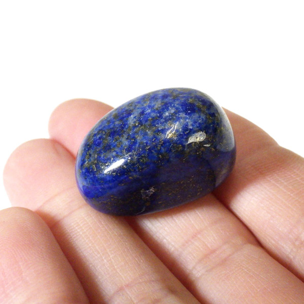 アフガニスタン産のラピスラズリ、タンブルです。 ラピスラズリは、ラズライト・アウィン・ソーダライト・ノーゼライトが集合したものです。特に、ラズライトとノーゼライトを多く含有すると、深く美しい色彩のラピスラズリとなります。全体的に、均一な色彩のものは少なく、黄金色の「パイライト」、白色の「カルサイト」など"が小さな斑点としてみられます。その中でも、トップクラスのグレードのものを集めました。