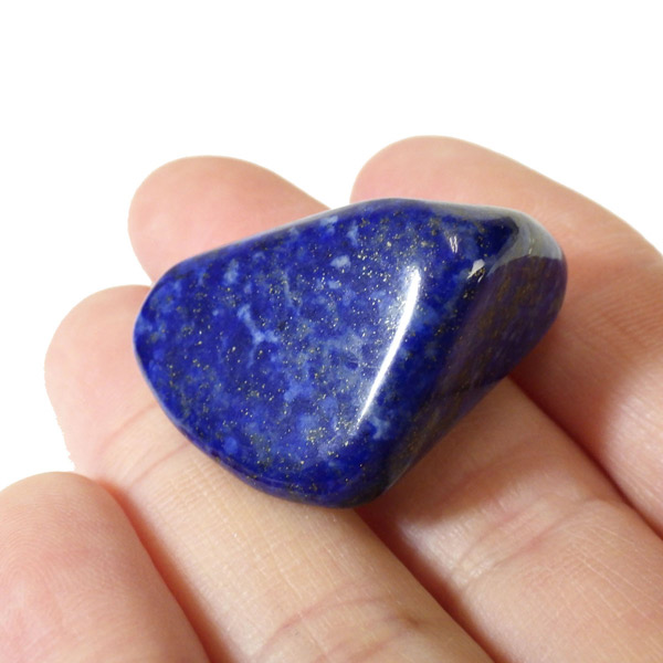 アフガニスタン産のラピスラズリ、タンブルです。 ラピスラズリは、ラズライト・アウィン・ソーダライト・ノーゼライトが集合したものです。特に、ラズライトとノーゼライトを多く含有すると、深く美しい色彩のラピスラズリとなります。全体的に、均一な色彩のものは少なく、黄金色の「パイライト」、白色の「カルサイト」など"が小さな斑点としてみられます。その中でも、トップクラスのグレードのものを集めました。