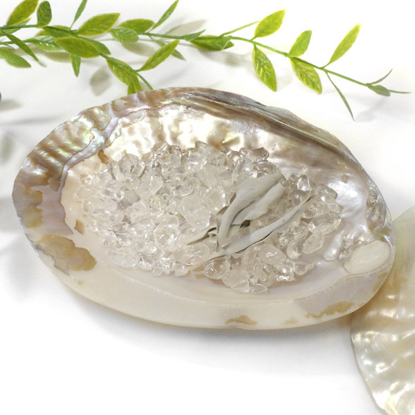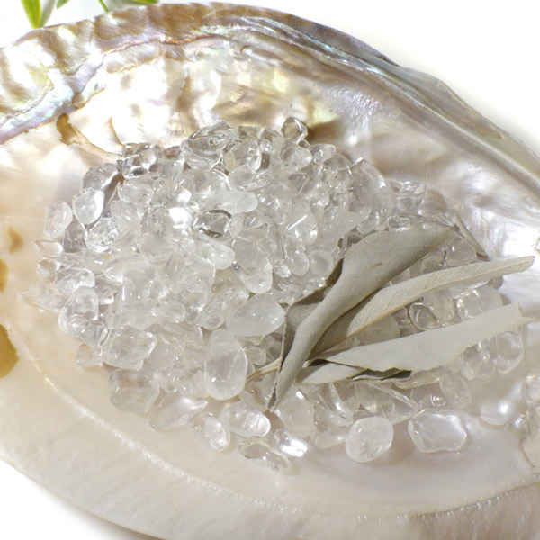 ヒマラヤ水晶さざれ・パールシェル・おためしホワイトセージの浄化セットです。 水晶さざれと一緒に置くことでパワーストーンやブレスを浄化できます。