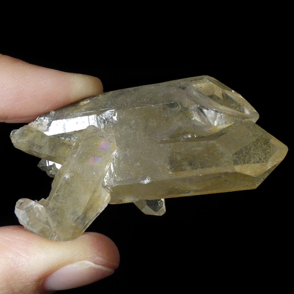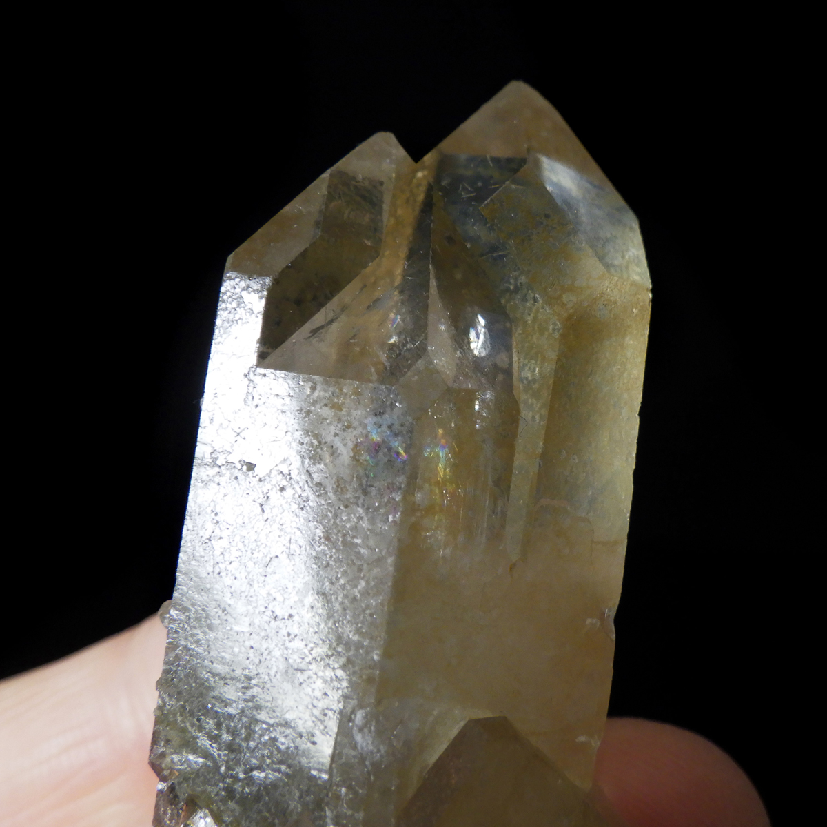 ブラジル・ミナスジェライス産のゴールデンタンジェリンクォーツです。優しいゴールド色に色づいた美しい水晶です。この金色は水晶の表面にヘマタイト成分が付着し、それが酸化してできます。表面は美しい金色ですが中身は透明な水晶です。はっきりとした色合いのレインボーが確認できます。