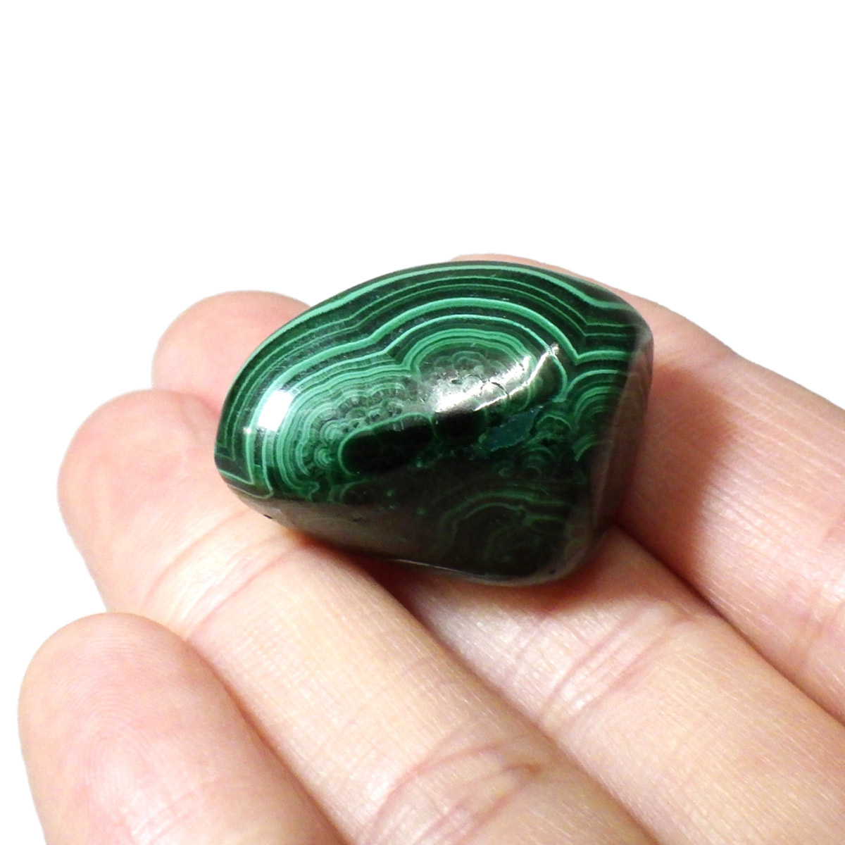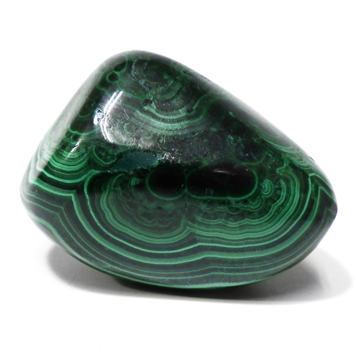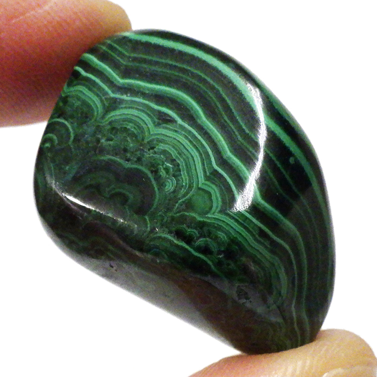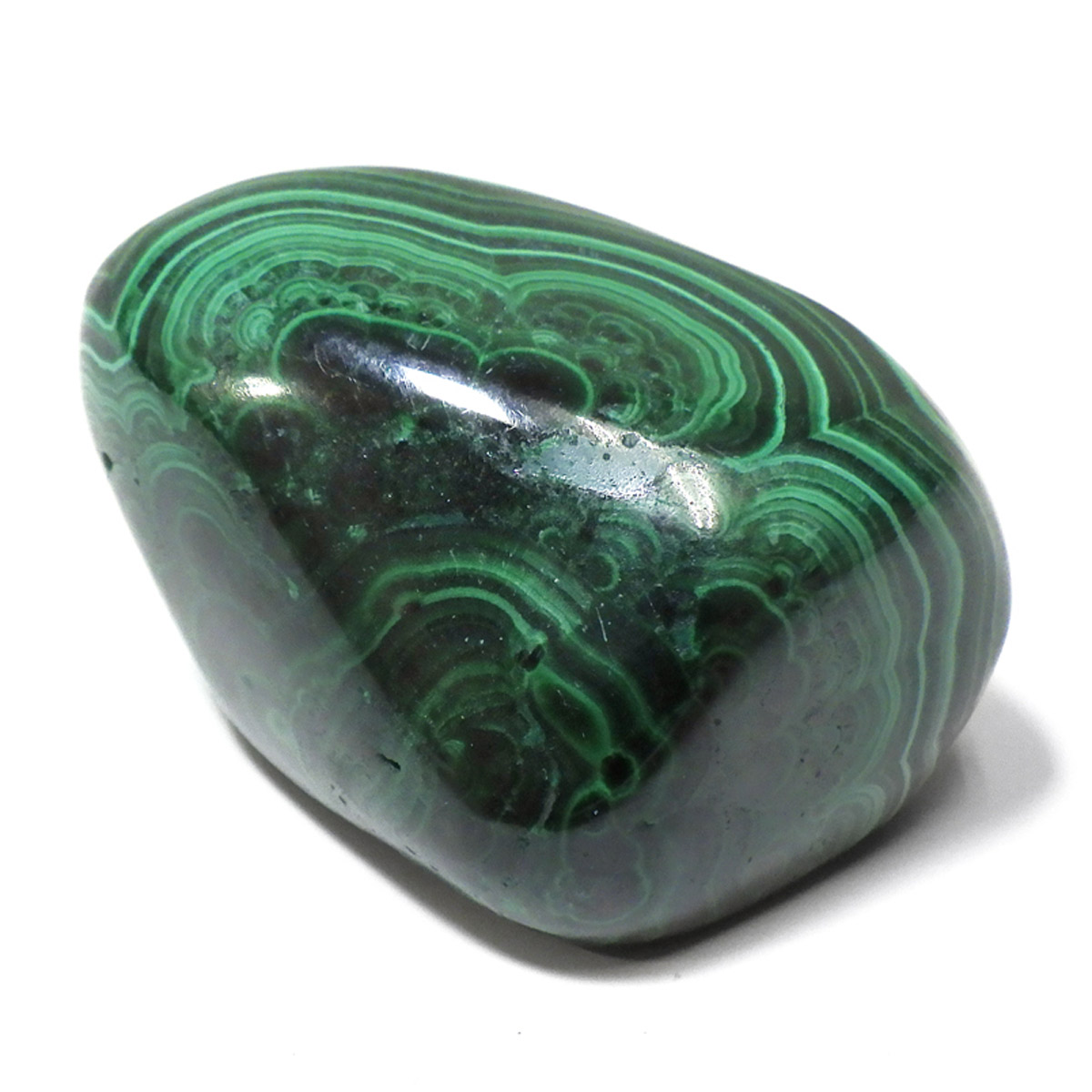 コンゴ産のマラカイト、タンブルです。濃いグリーンカラーに独特の模様を持つマラカイト。 「マラカイトグリーン」という色名になっているほど、特徴的で美しい緑色です。 マラカイトの産地はアメリカ・ロシア・コンゴ・ザンビアなどですが、中でもコンゴ産のマラカイトは非常に美しいものが採れるため、コレクターからも支持されています。