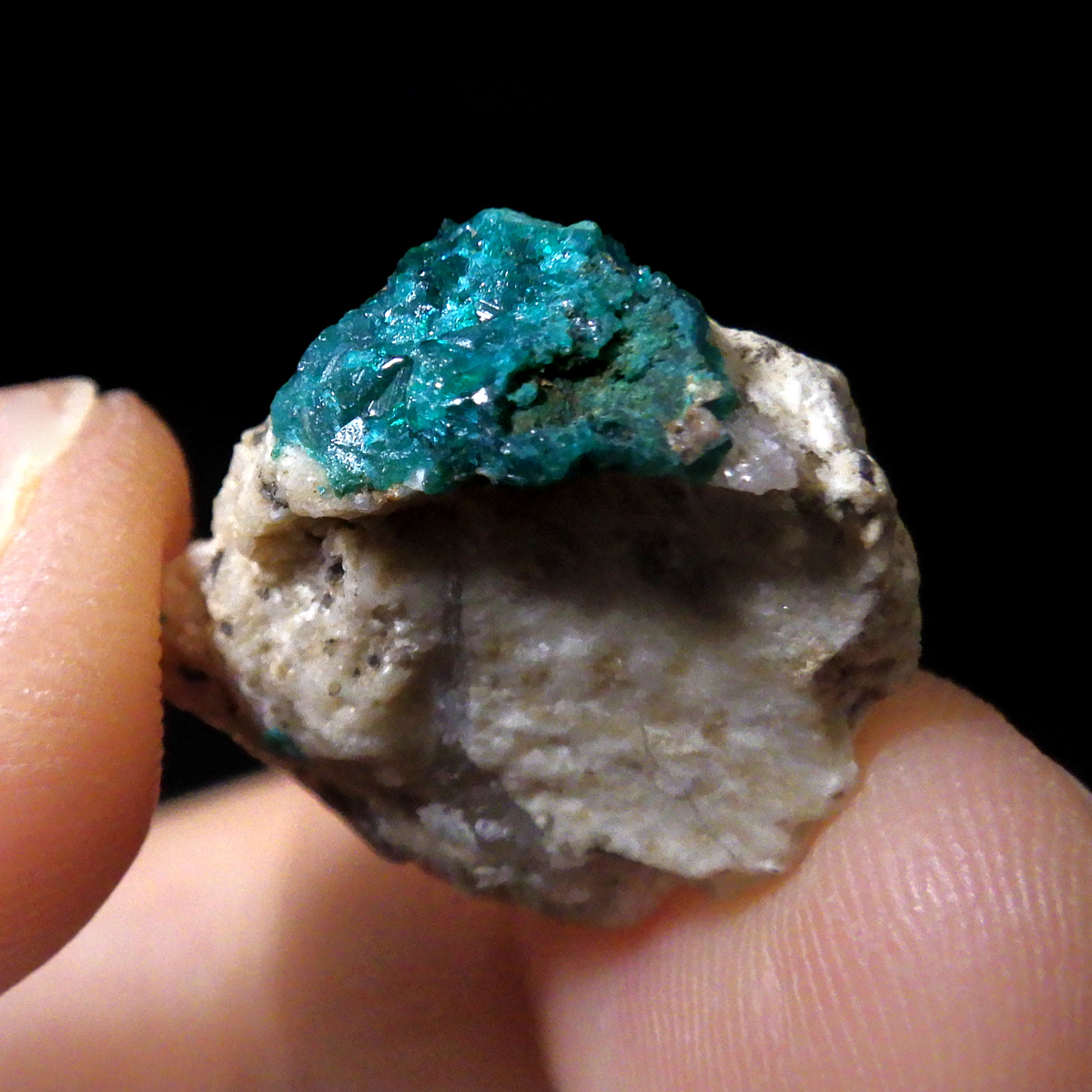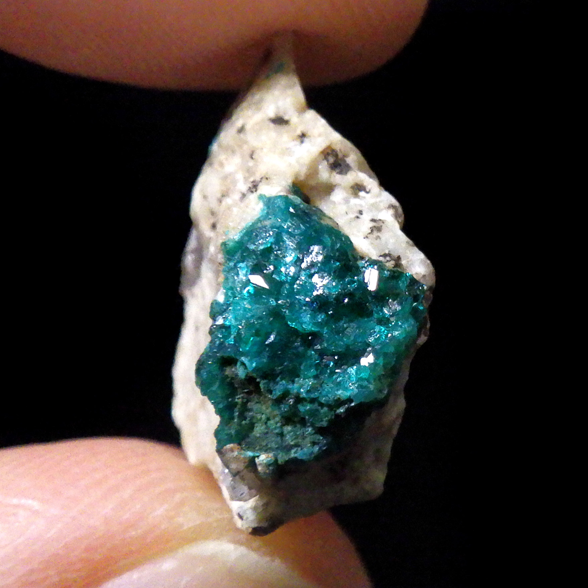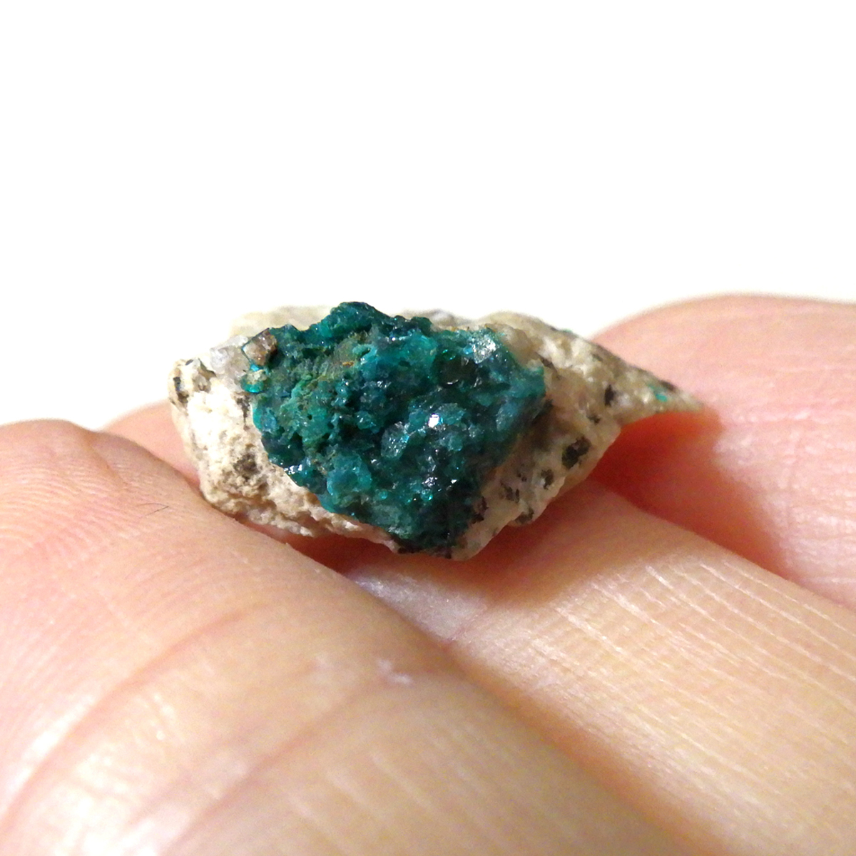 カザフスタン産のダイオプテーズ原石です。ダイオプテーズは、美しい翠緑色が魅力的な石で、和名は「翠銅鉱」と言います。1785年に最初にカザフスタンで発見され、とても深く鮮やかなグリーンが特徴で、当時はエメラルドと間違われました。その後、エメラルドと成分が異なることが確認され、ダイオプテーズと名づけられました。銅にまつわる副産物で、ダイオプテーズそのものでも希少性が高く、高価な鉱物です。