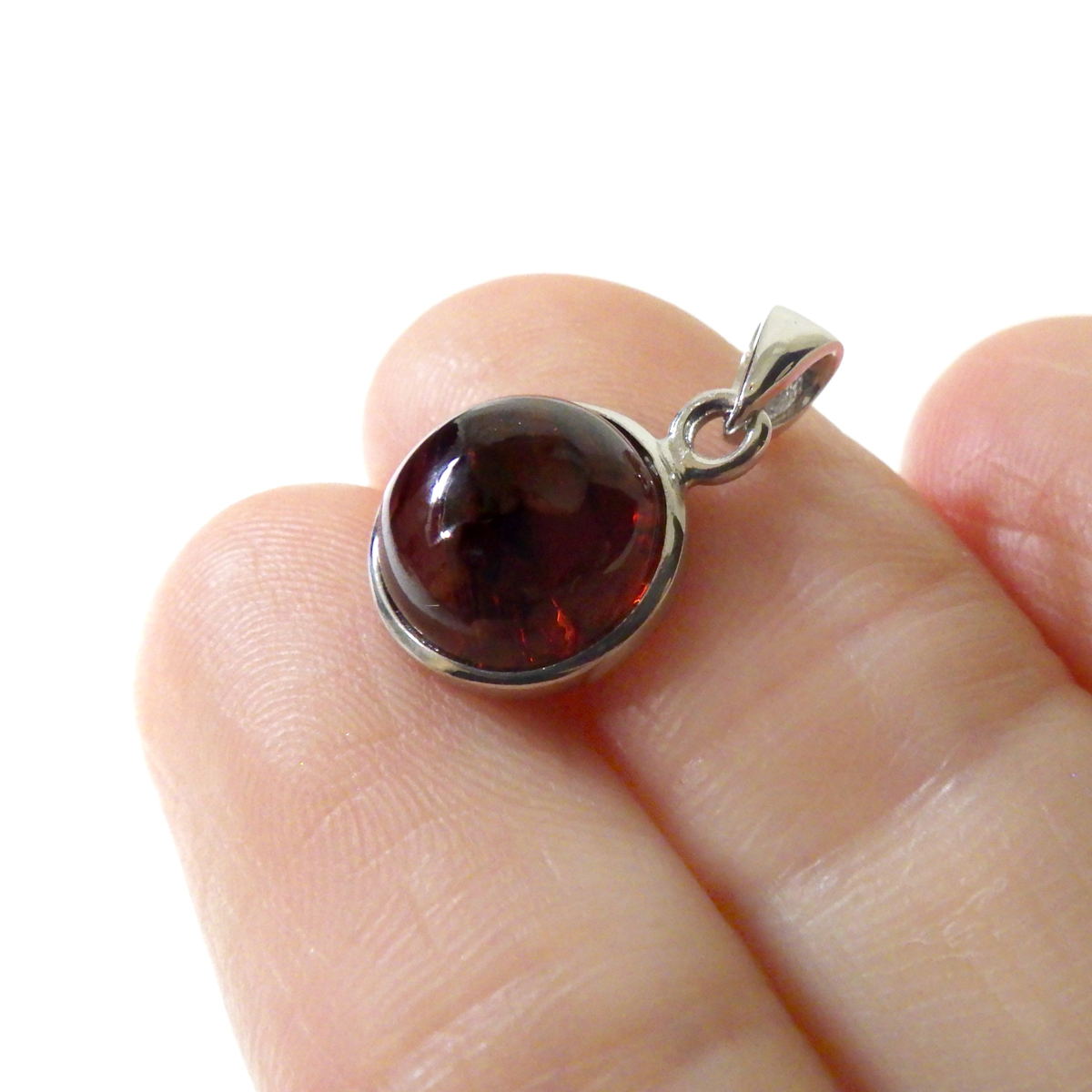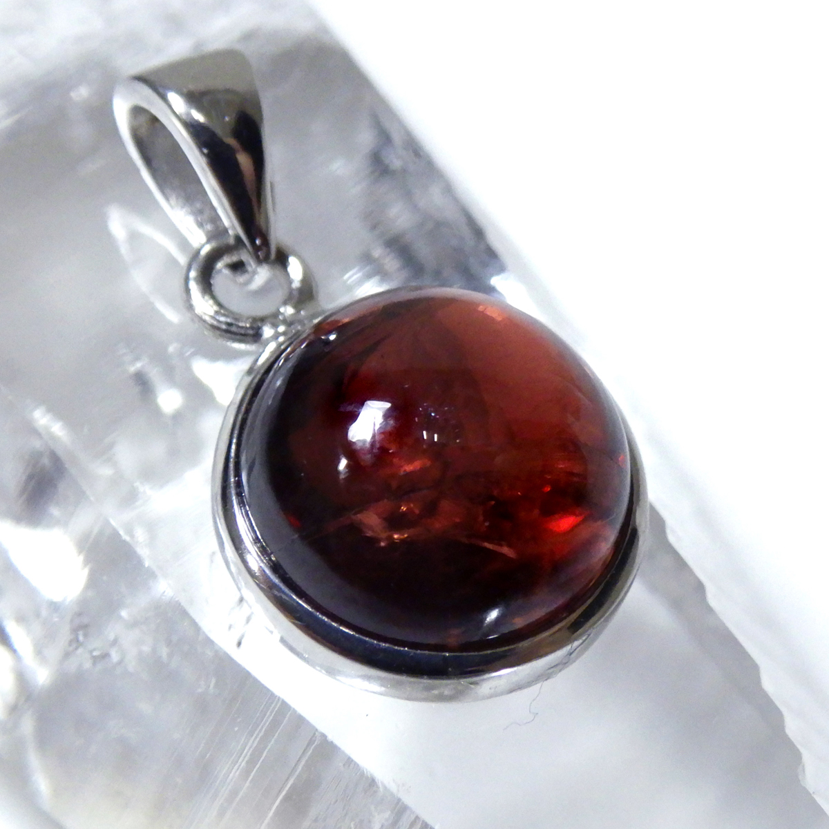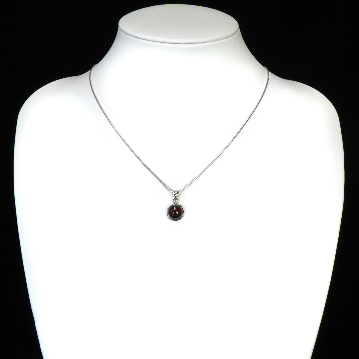 インド産アルマンディンガーネットのペンダントトップです。和名を鉄礬柘榴石と呼び、全体的に濃く黒っぽい赤みを示しています。渋い赤い石ですが、それが大人っぽく、さり気無い印象です。透明感のある赤い石自体、種類が少なく、1つは持っておきたい石ではないでしょうか。また、ガーネットは1月の誕生石です。