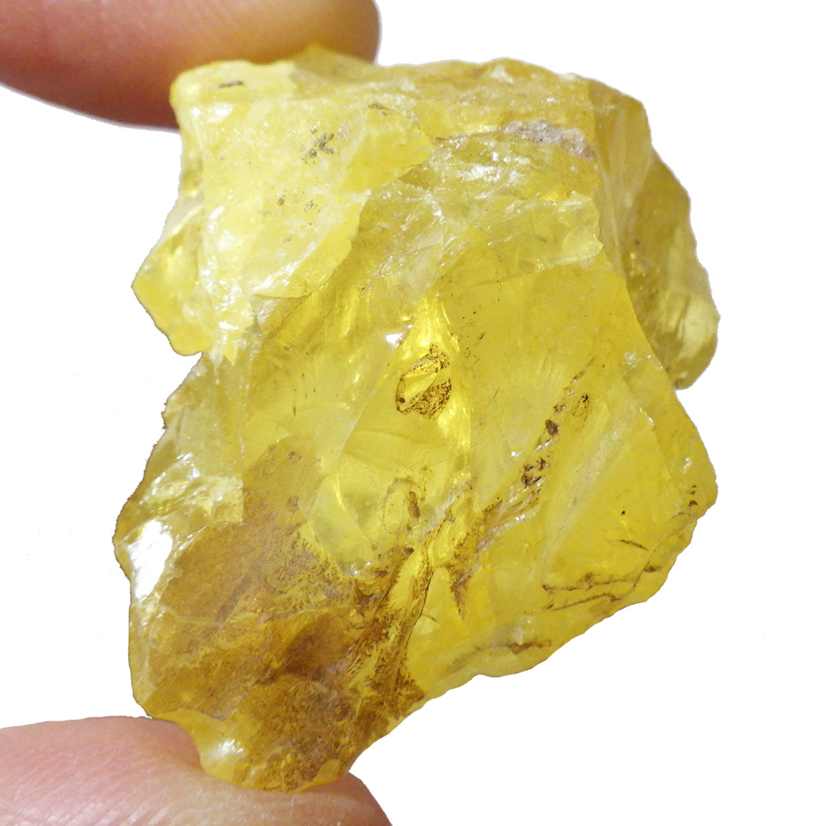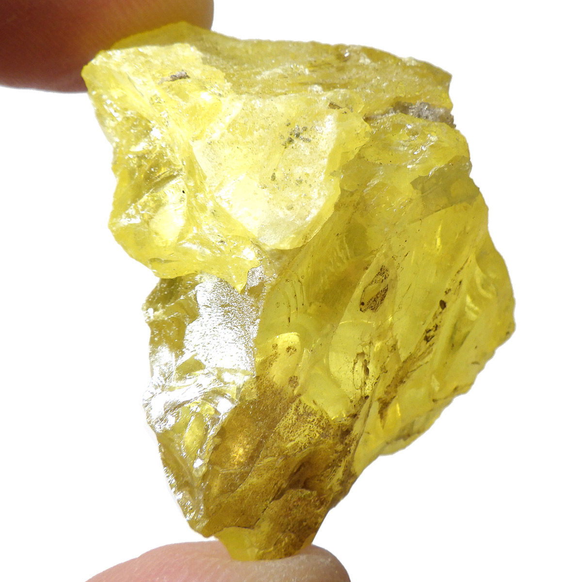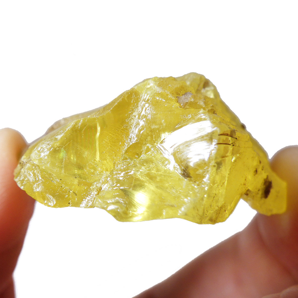 ロシア産、サルファーの原石です。サルファーは和名で硫黄のことです。サルファーは黄色の鉱物で、火山の火口や、温泉の噴出孔付近から産出します。サルファーは、マグネシウムが豊富な環境で多く見られます。硫黄は多くの同素体や結晶系があるので同じ硫黄でもいろいろな形状があります。きれいな結晶のロシア産のサルファーは大変希少です。艶やかなガラスのような光沢のイエローで、混じりっ気のないきれいな結晶が特徴的です。