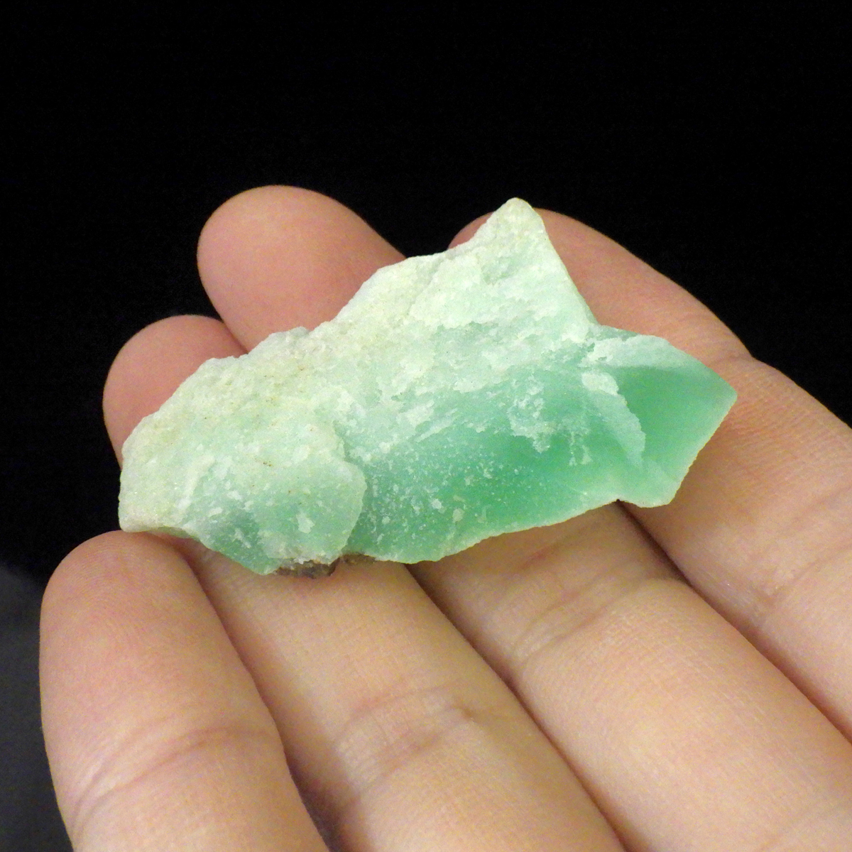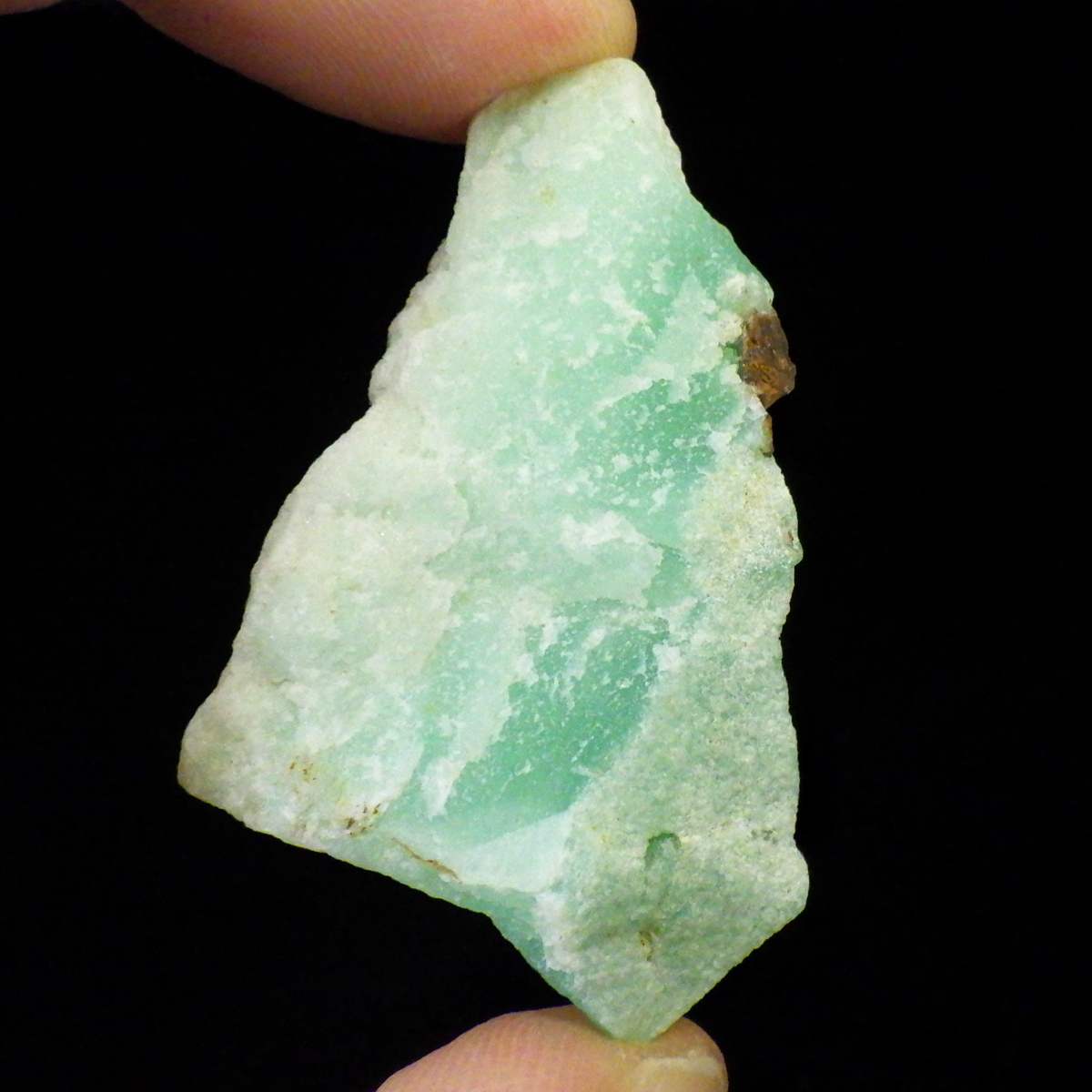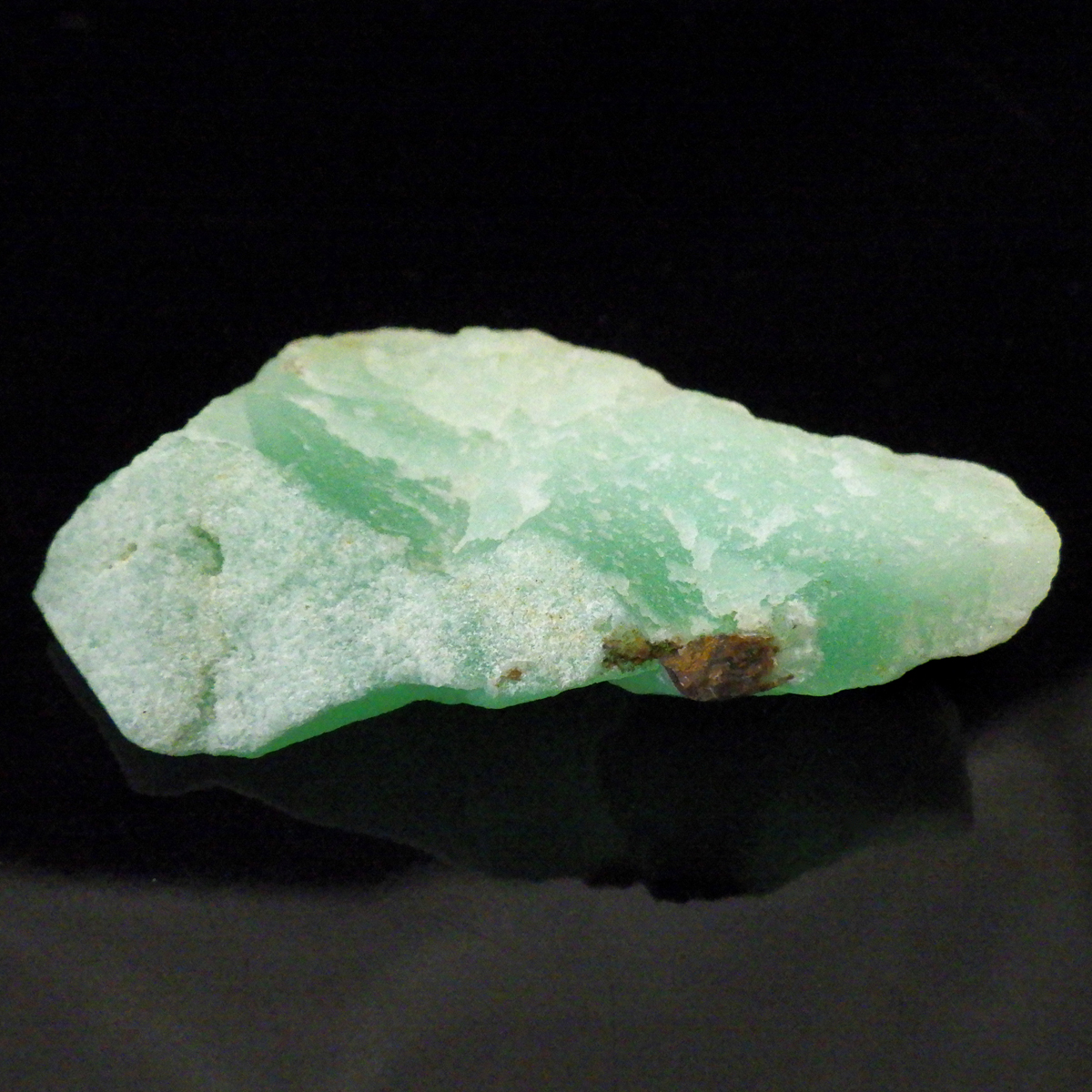 オーストラリア産のクリソプレーズ、ポリッシュ仕上げです。 和名を「緑玉髄」といいます。カルセドニーの一種で、黄緑色や薄緑色のものをクリソプレーズと言います。産出量がとても少ない為カルセドニーの中で最も価値が高い石とされており、その鮮やかな色から「アップルグリーン」と呼ばれ親しまれてきました。生成は珪酸溶液中にニッケルを含む鉱物が混入し、コロイド状になって固まってできると言われています。太陽光に長時間当てると退色する恐れがあるので注意が必要です。