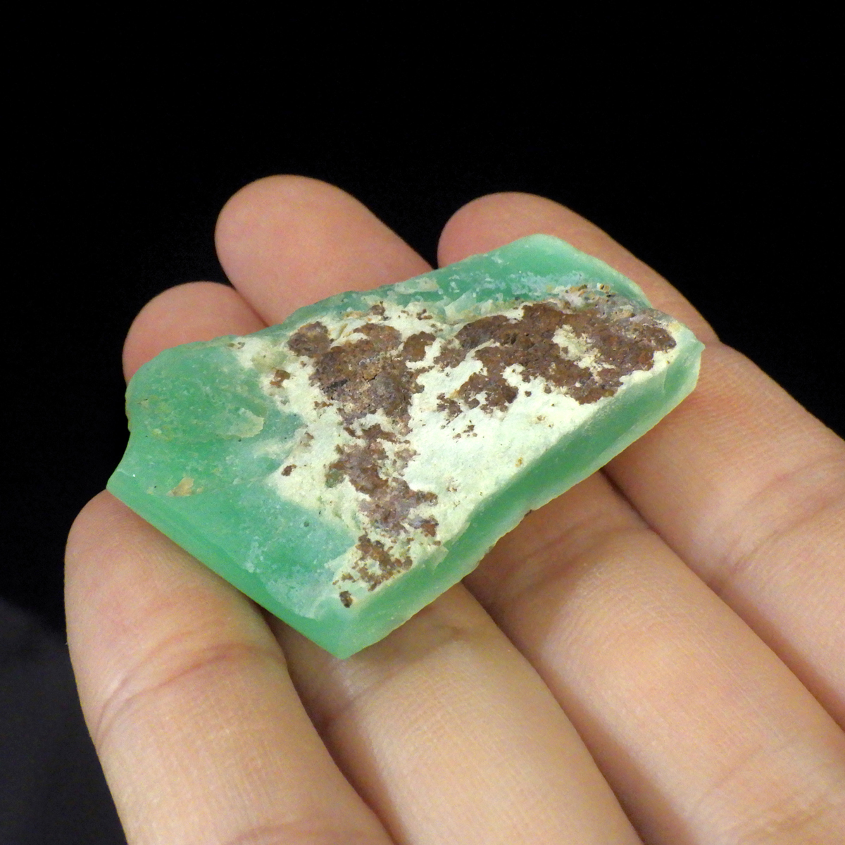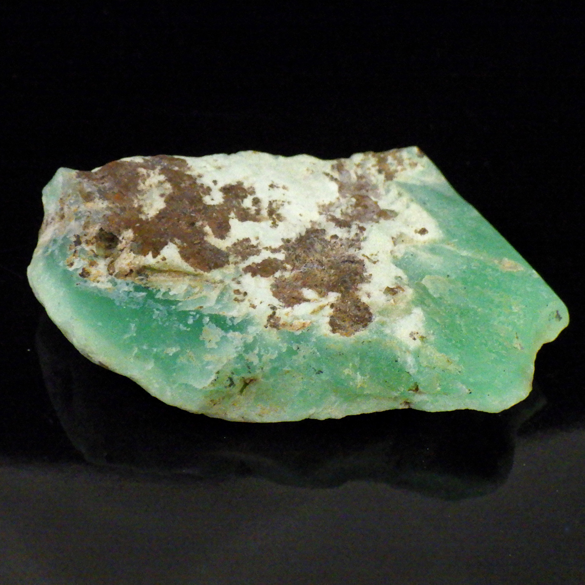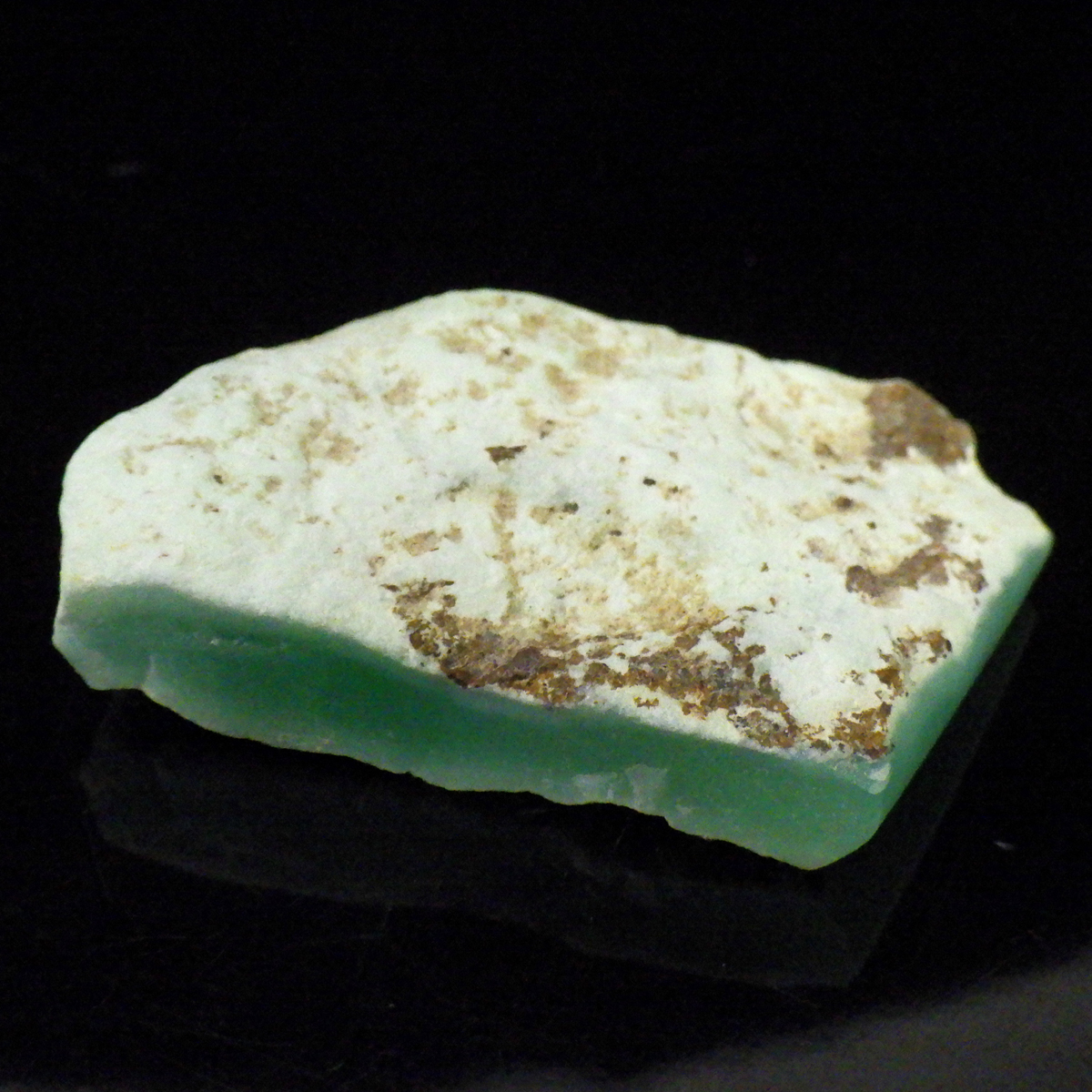 オーストラリア産のクリソプレーズ、ポリッシュ仕上げです。 和名を「緑玉髄」といいます。カルセドニーの一種で、黄緑色や薄緑色のものをクリソプレーズと言います。産出量がとても少ない為カルセドニーの中で最も価値が高い石とされており、その鮮やかな色から「アップルグリーン」と呼ばれ親しまれてきました。生成は珪酸溶液中にニッケルを含む鉱物が混入し、コロイド状になって固まってできると言われています。太陽光に長時間当てると退色する恐れがあるので注意が必要です。