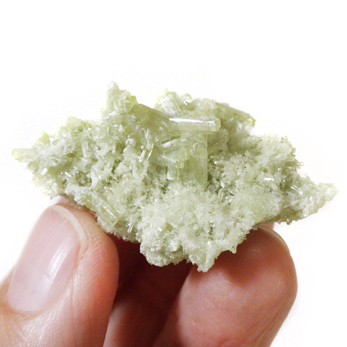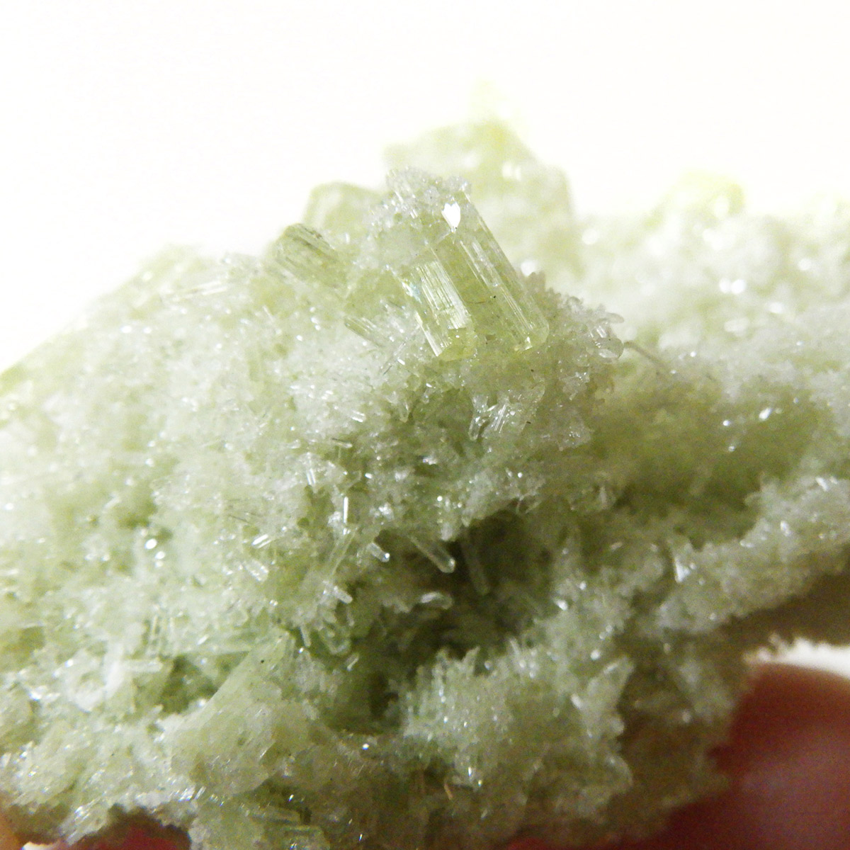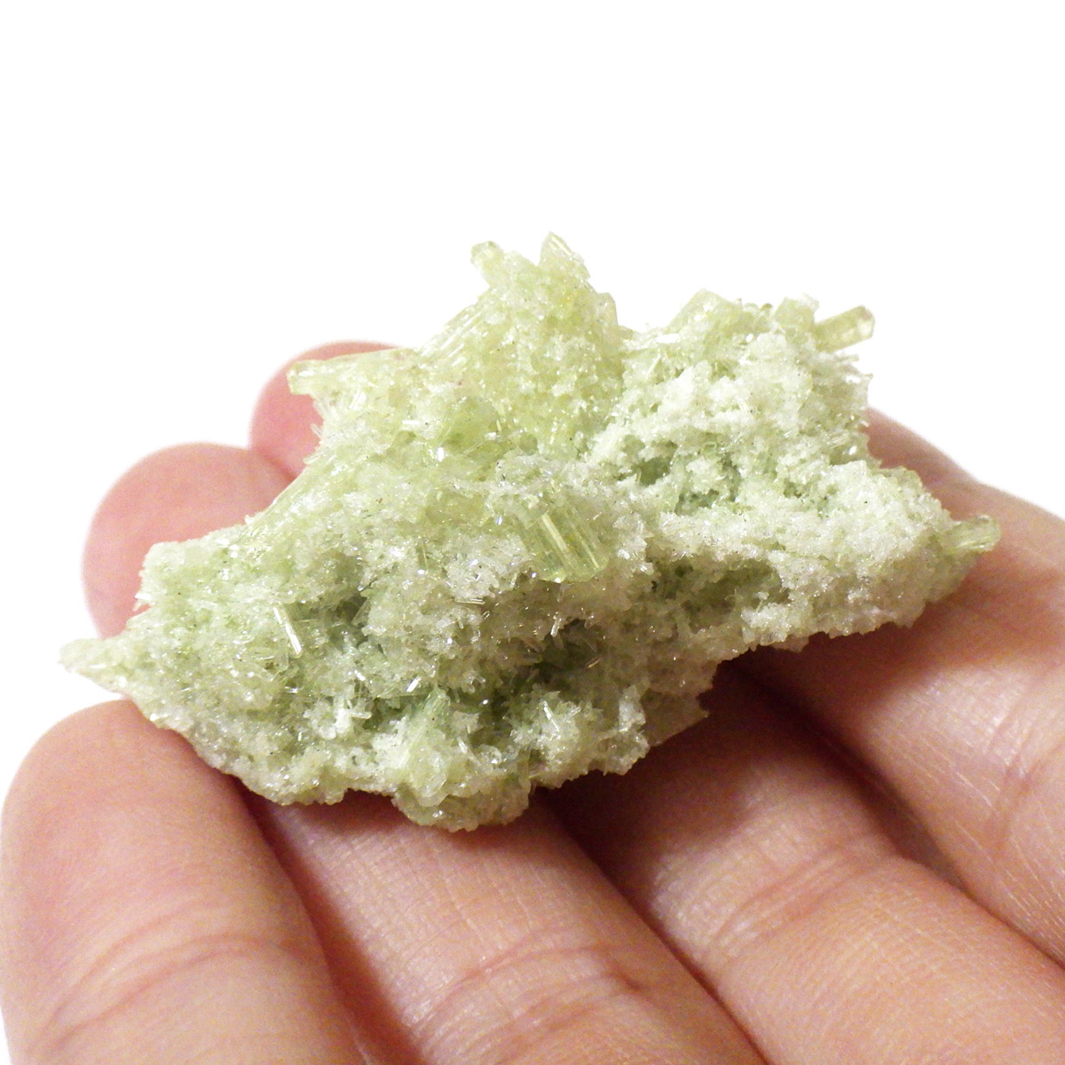 今回のベスビアナイトは、カナダ・ケベック州で産し、結晶化したとても珍しい一品です。淡いグリーンが、爽やかで美しく、このベスビアナイトのような美しい色をしたグリーンは大変少ないです。