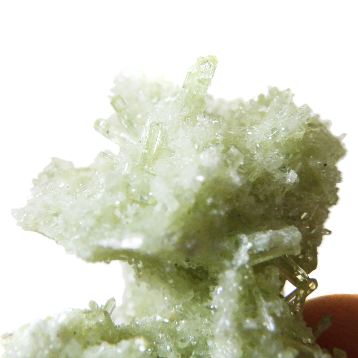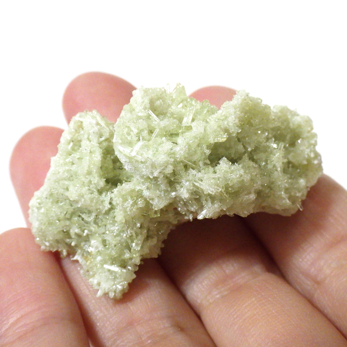 今回のベスビアナイトは、カナダ・ケベック州で産し、結晶化したとても珍しい一品です。淡いグリーンが、爽やかで美しく、このベスビアナイトのような美しい色をしたグリーンは大変少ないです。