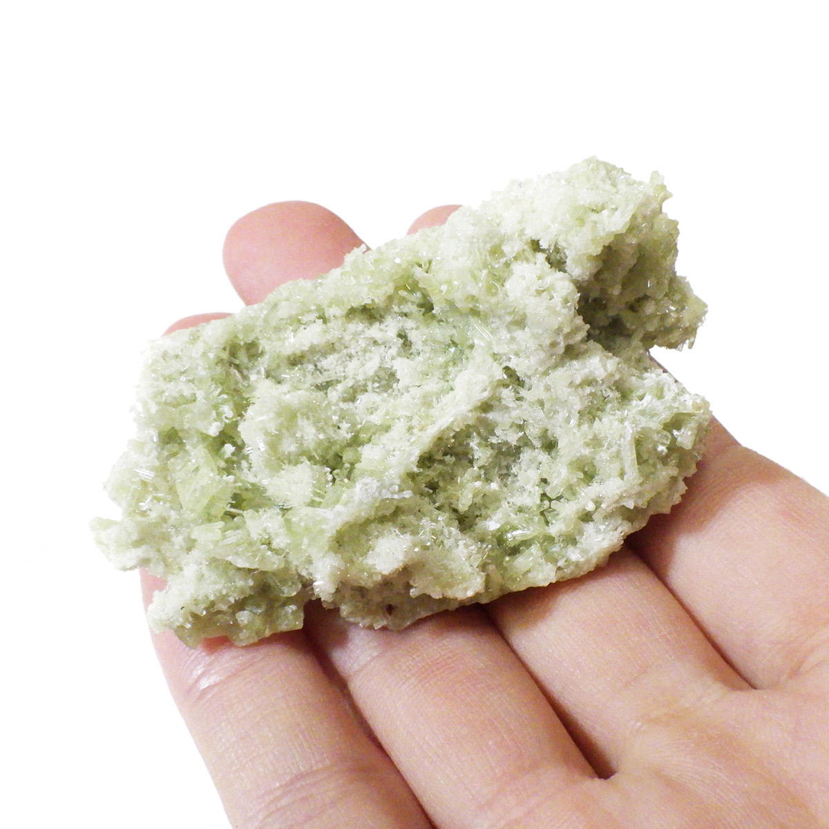今回のベスビアナイトは、カナダ・ケベック州で産し、結晶化したとても珍しい一品です。淡いグリーンが、爽やかで美しく、このベスビアナイトのような美しい色をしたグリーンは大変少ないです。