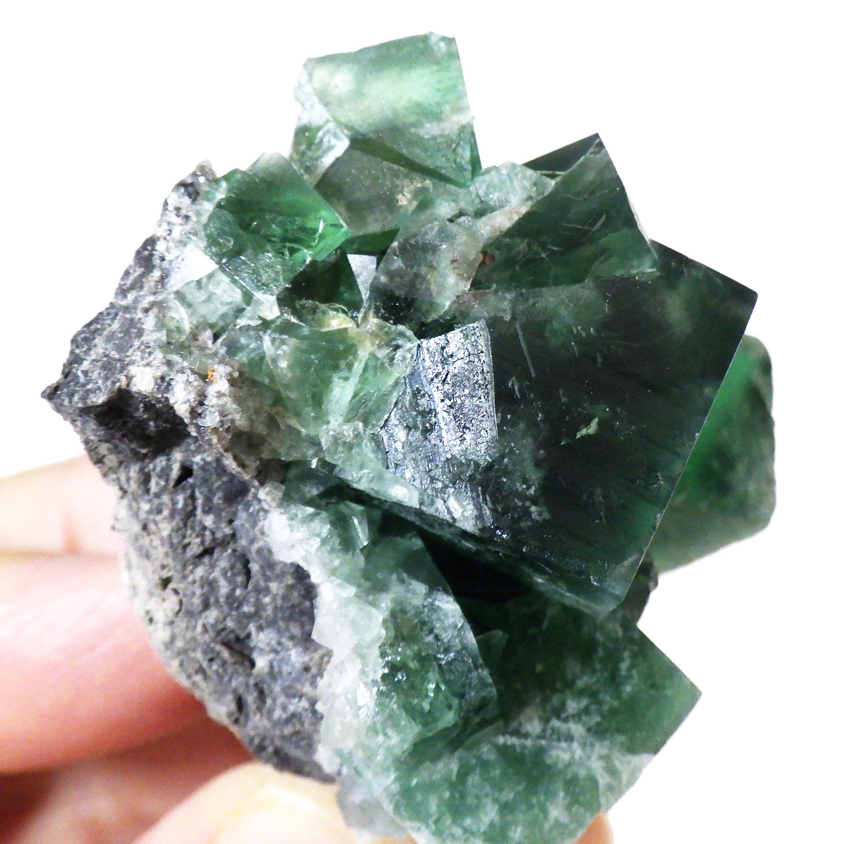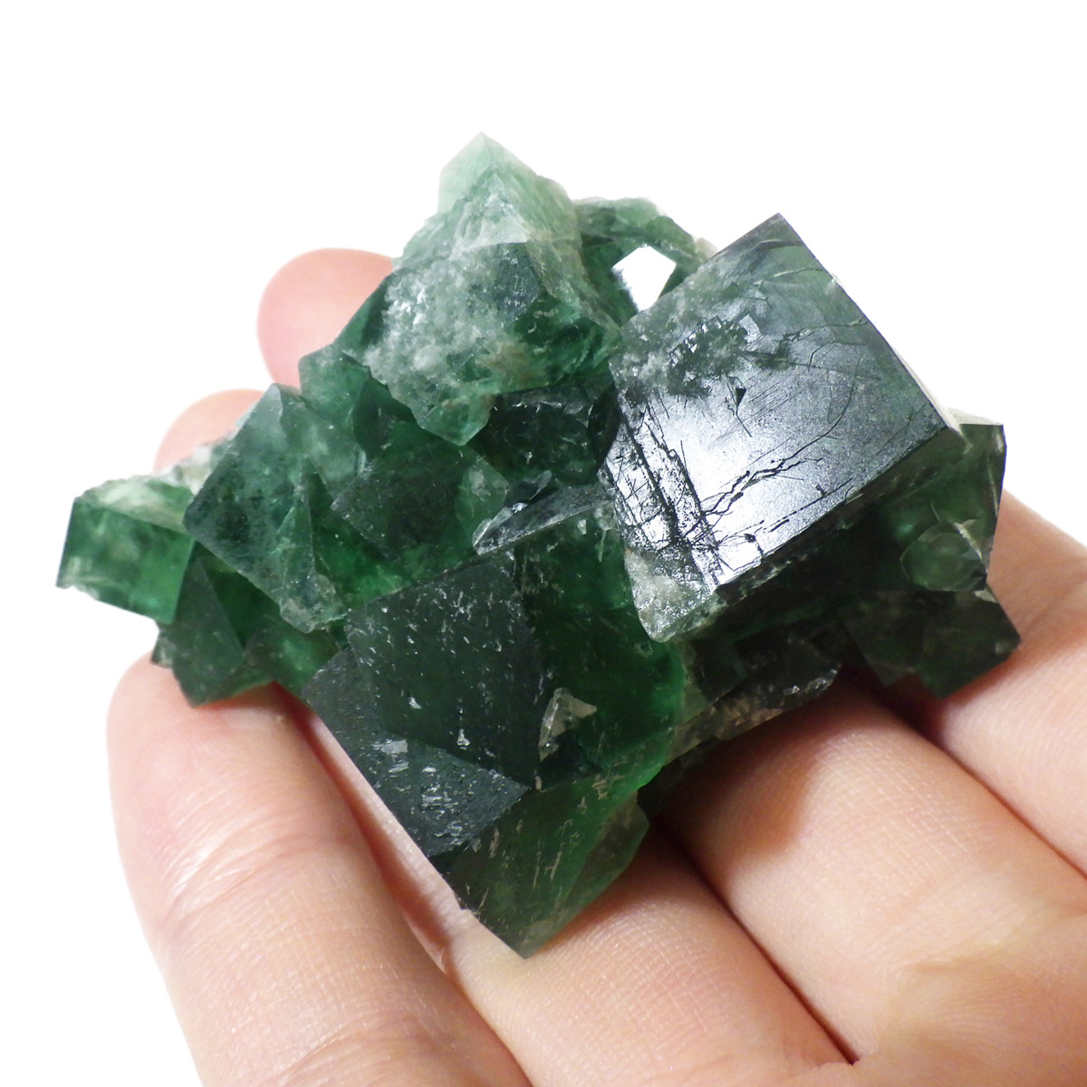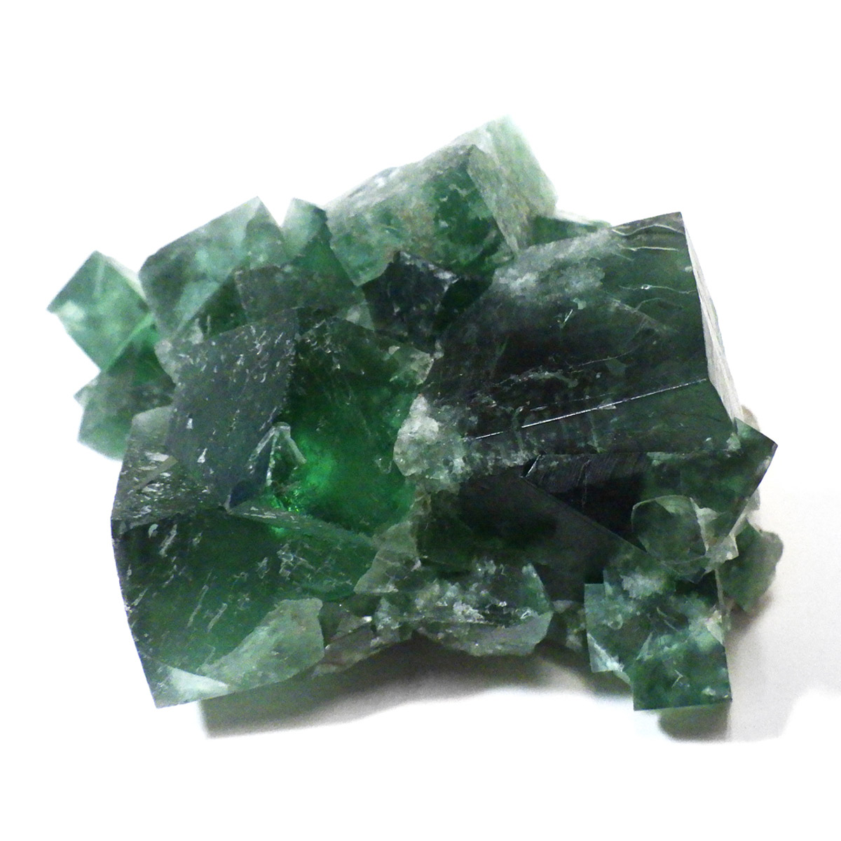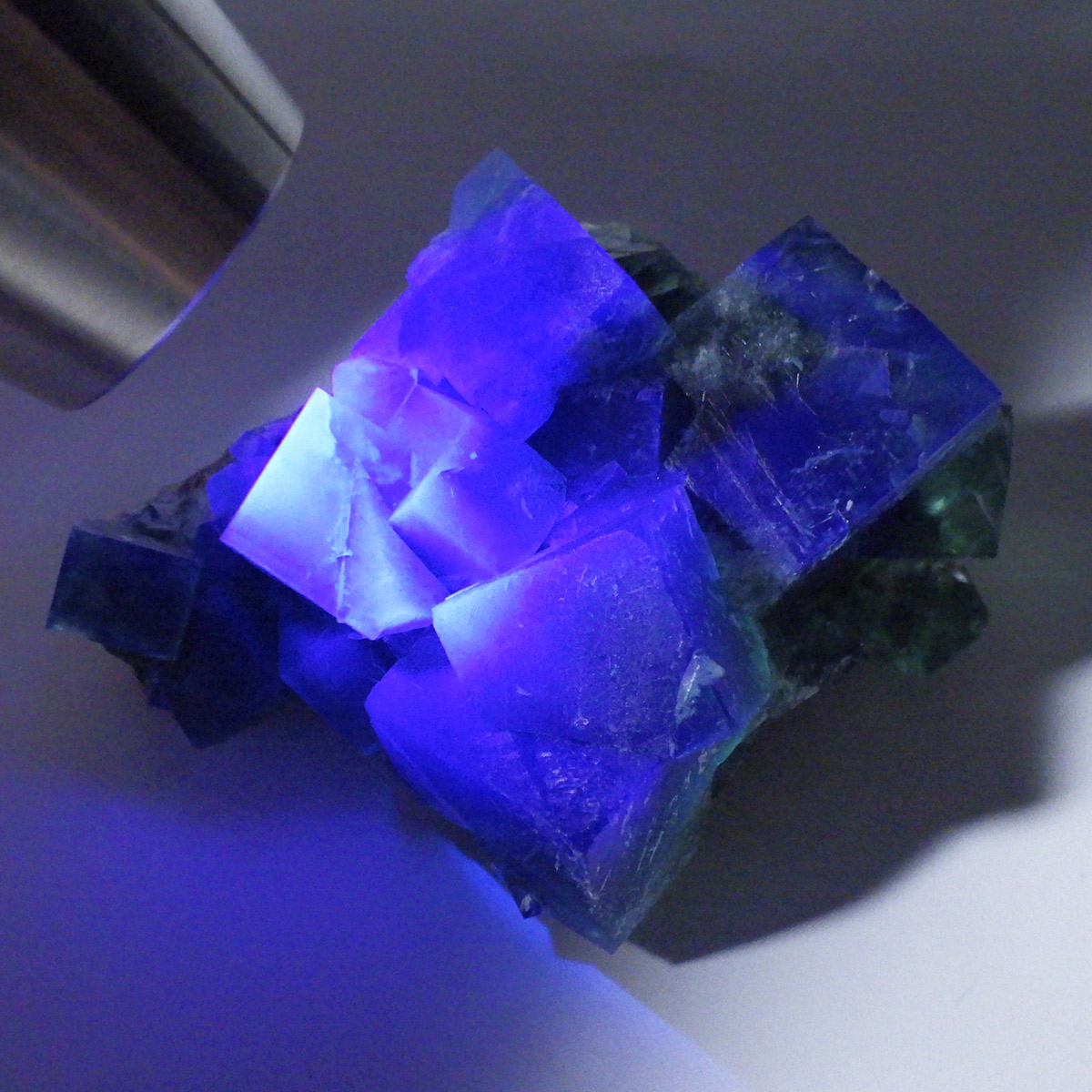 イングランドのダイアナマリア鉱山産のグリーンフローライト原石です。ダイアナマリア鉱山は2017年から市場に出回り始めた新しいフローライトの産地となります。何層にも連なった結晶が非常に美しいです。また、ブラックライトに反応し見事な青色の蛍光を楽しめます。