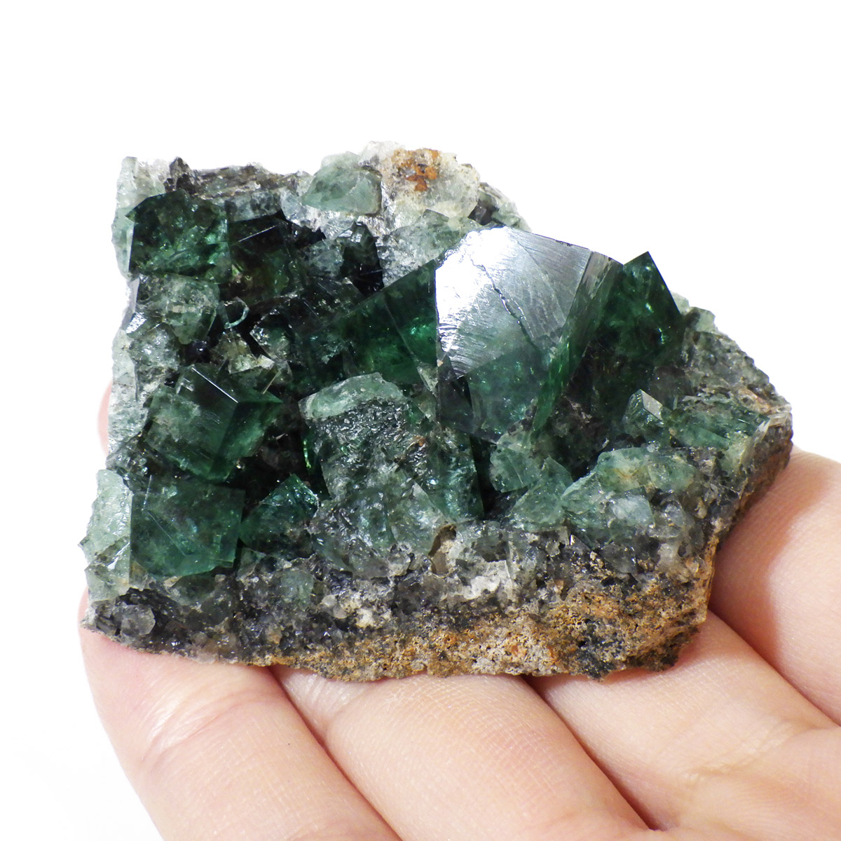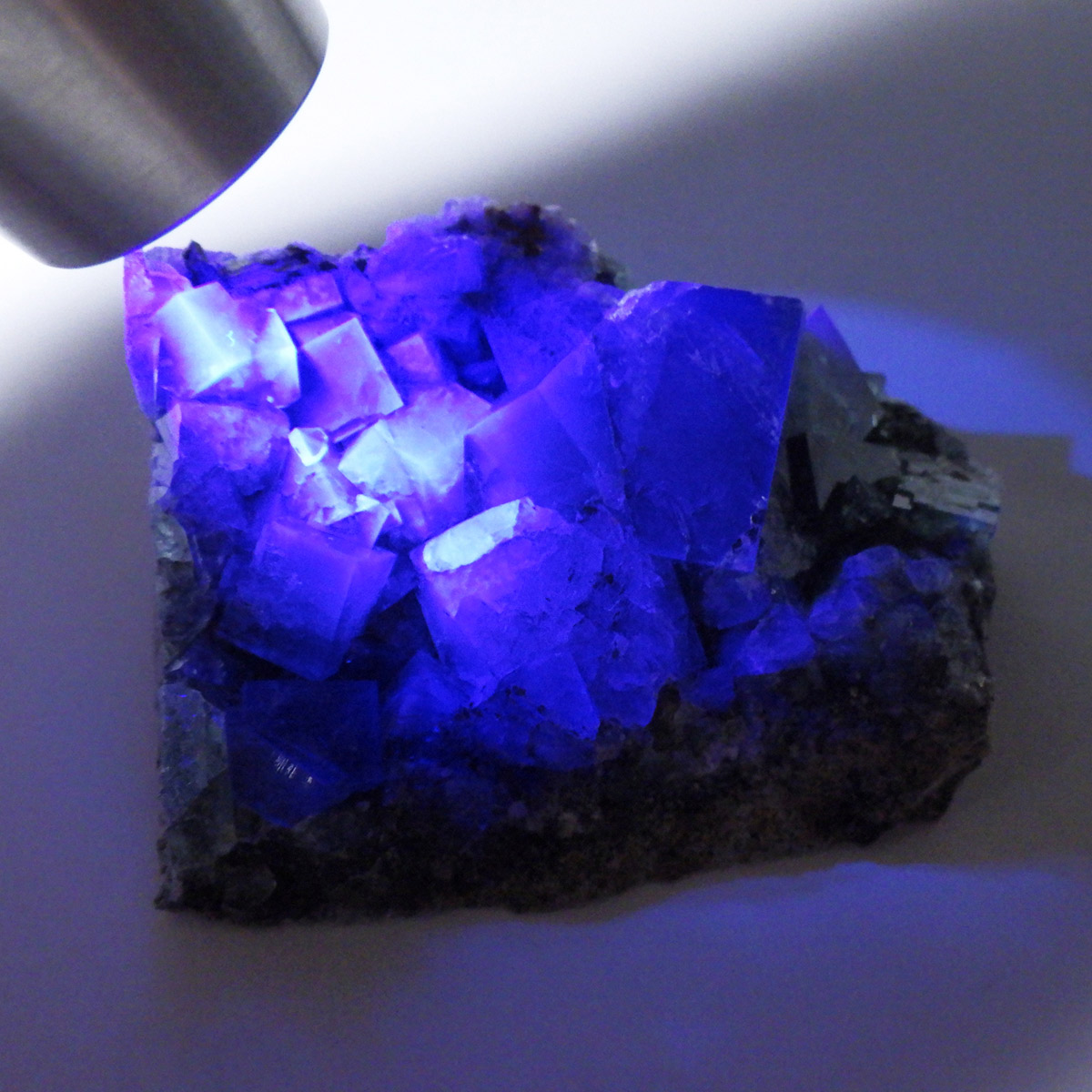 イングランドのダイアナマリア鉱山産のグリーンフローライト原石です。ダイアナマリア鉱山は2017年から市場に出回り始めた新しいフローライトの産地となります。何層にも連なった結晶が非常に美しいです。また、ブラックライトに反応し見事な青色の蛍光を楽しめます。