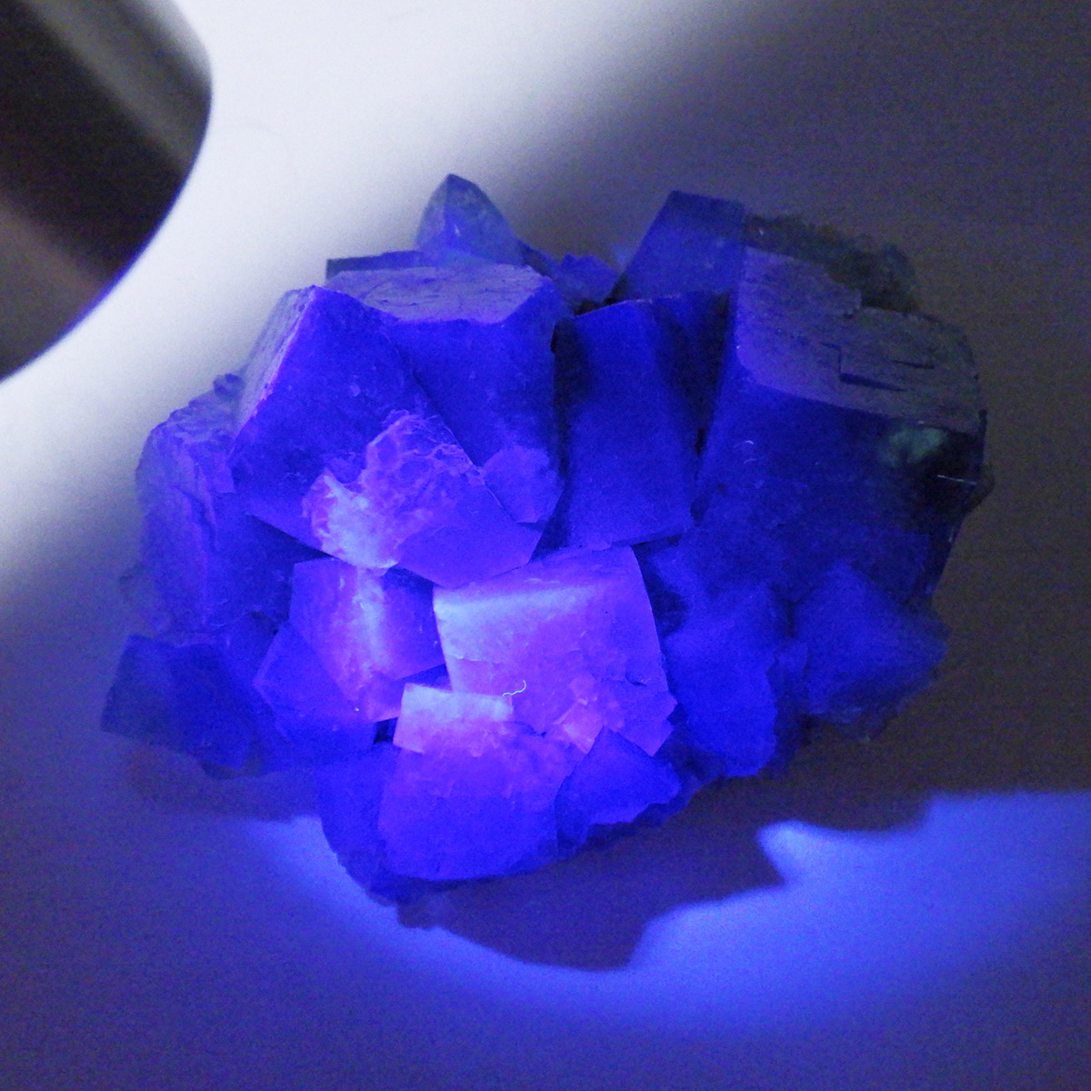 イングランドのダイアナマリア鉱山産のグリーンフローライト原石です。ダイアナマリア鉱山は2017年から市場に出回り始めた新しいフローライトの産地となります。何層にも連なった結晶が非常に美しいです。また、ブラックライトに反応し見事な青色の蛍光を楽しめます。