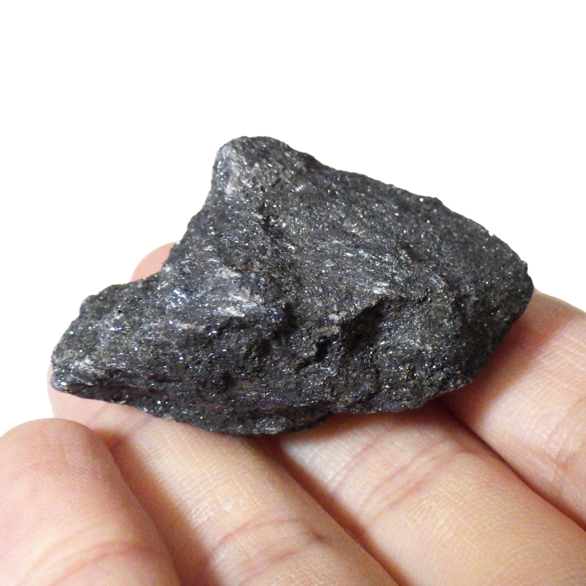 アメリカのミシガン州産のスペキュラーヘマタイト原石です。ヘマタイトは和名で赤鉄鉱。「スペキュラー」というのは、「反射鏡のような」という意味で表面で光を反射してキラキラと輝く効果です。ヘマタイト表面の細かな結晶に光が当たり、キラキラとラメのようにとてもきれいに輝きます。スペキュラーライト、鏡鉄鉱とも呼ばれます。