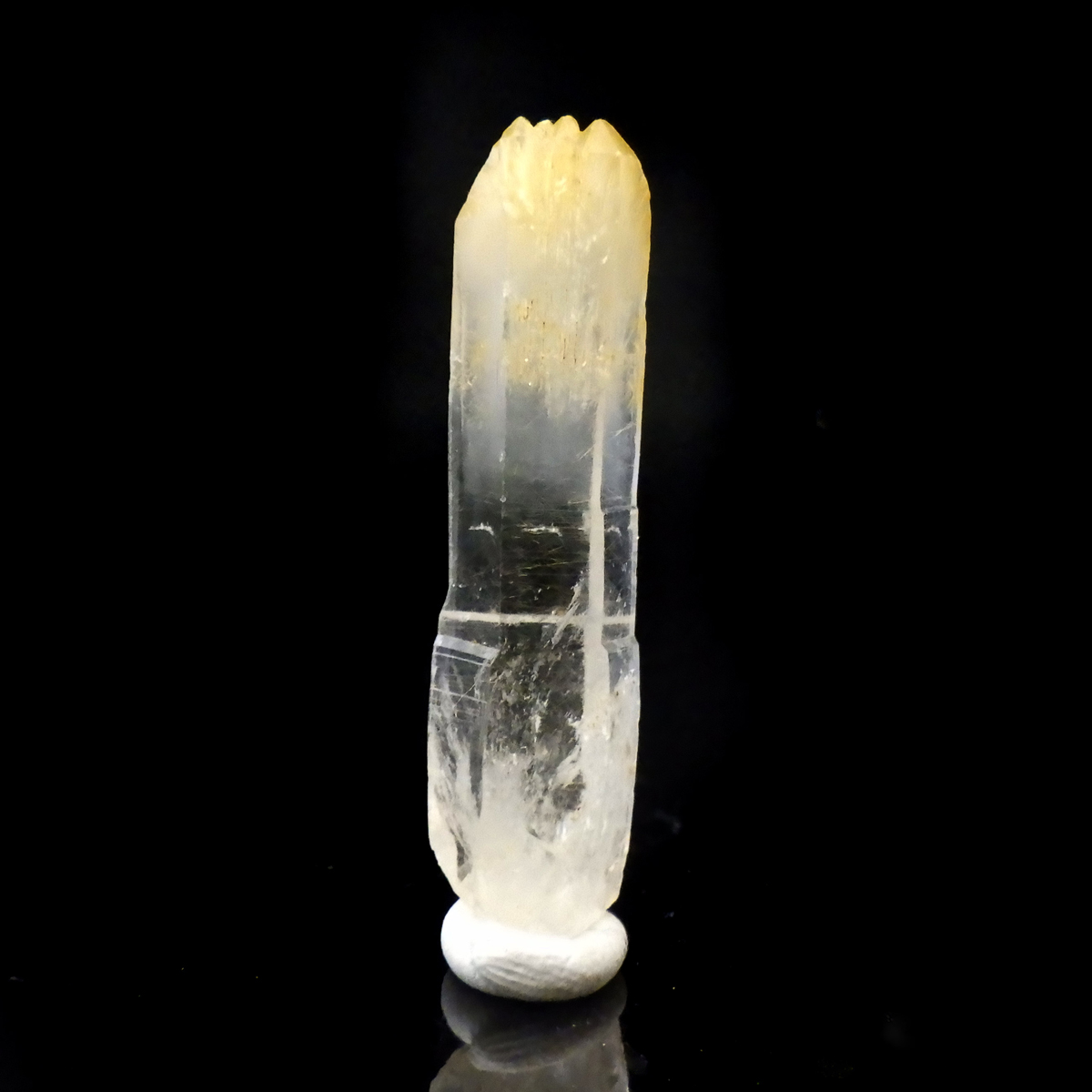 コロンビア・ボヤカ鉱山産のマンゴー水晶です。 マンゴークォーツは近年発見された新しい鉱物で、大変貴重な鉱物になります。 カオリナイトという粘土鉱物の一種のハロイサイトが、水晶に取り込まれて成長した石で、鉱物名は「ハロイサイトインクォーツ」といいます。 先端が優しいマンゴー色になっており、水晶部分からのグラデーションが見事です。