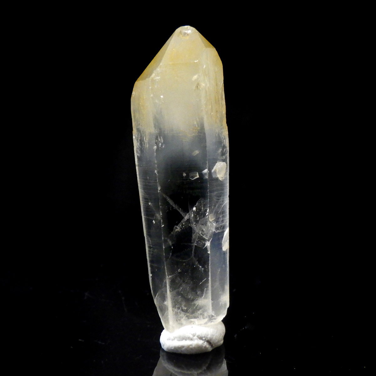 コロンビア・ボヤカ鉱山産のマンゴー水晶です。 マンゴークォーツは近年発見された新しい鉱物で、大変貴重な鉱物になります。 カオリナイトという粘土鉱物の一種のハロイサイトが、水晶に取り込まれて成長した石で、鉱物名は「ハロイサイトインクォーツ」といいます。 先端が優しいマンゴー色になっており、水晶部分からのグラデーションが見事です。