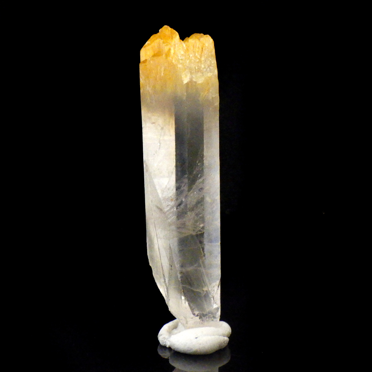 コロンビア・ボヤカ鉱山産のマンゴー水晶です。 マンゴークォーツは近年発見された新しい鉱物で、大変貴重な鉱物になります。 カオリナイトという粘土鉱物の一種のハロイサイトが、水晶に取り込まれて成長した石で、鉱物名は「ハロイサイトインクォーツ」といいます。 先端が優しいマンゴー色になっており、水晶部分からのグラデーションが見事です。