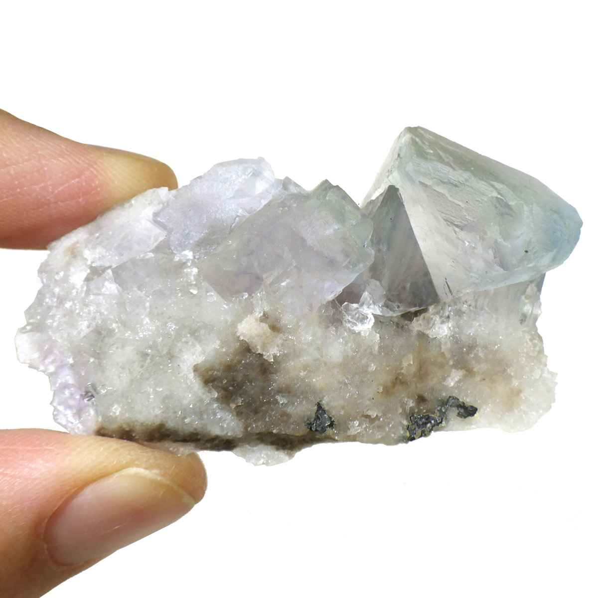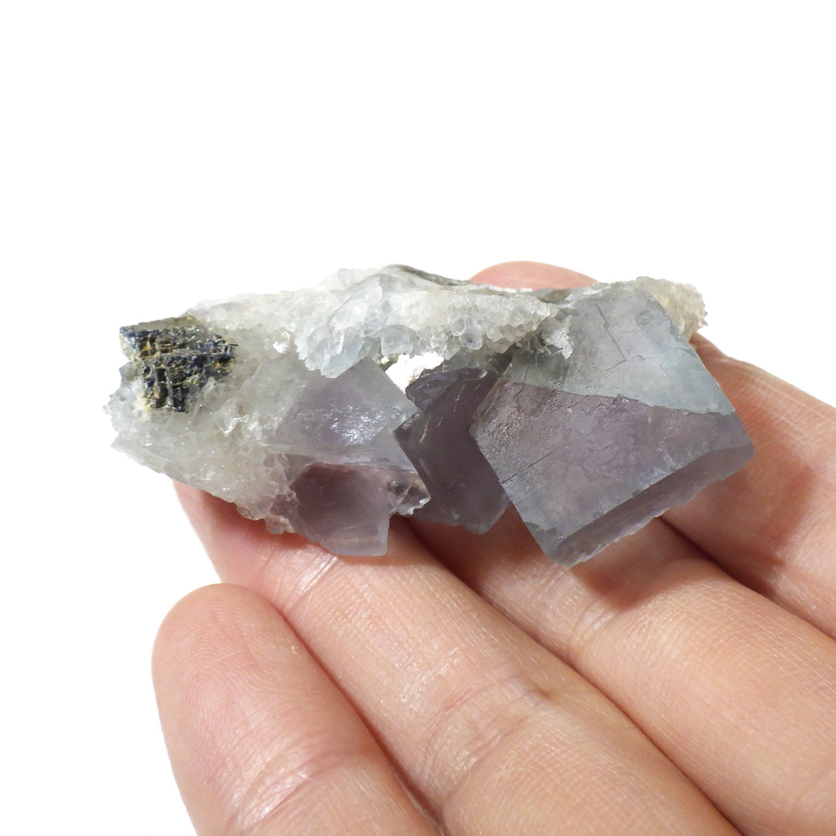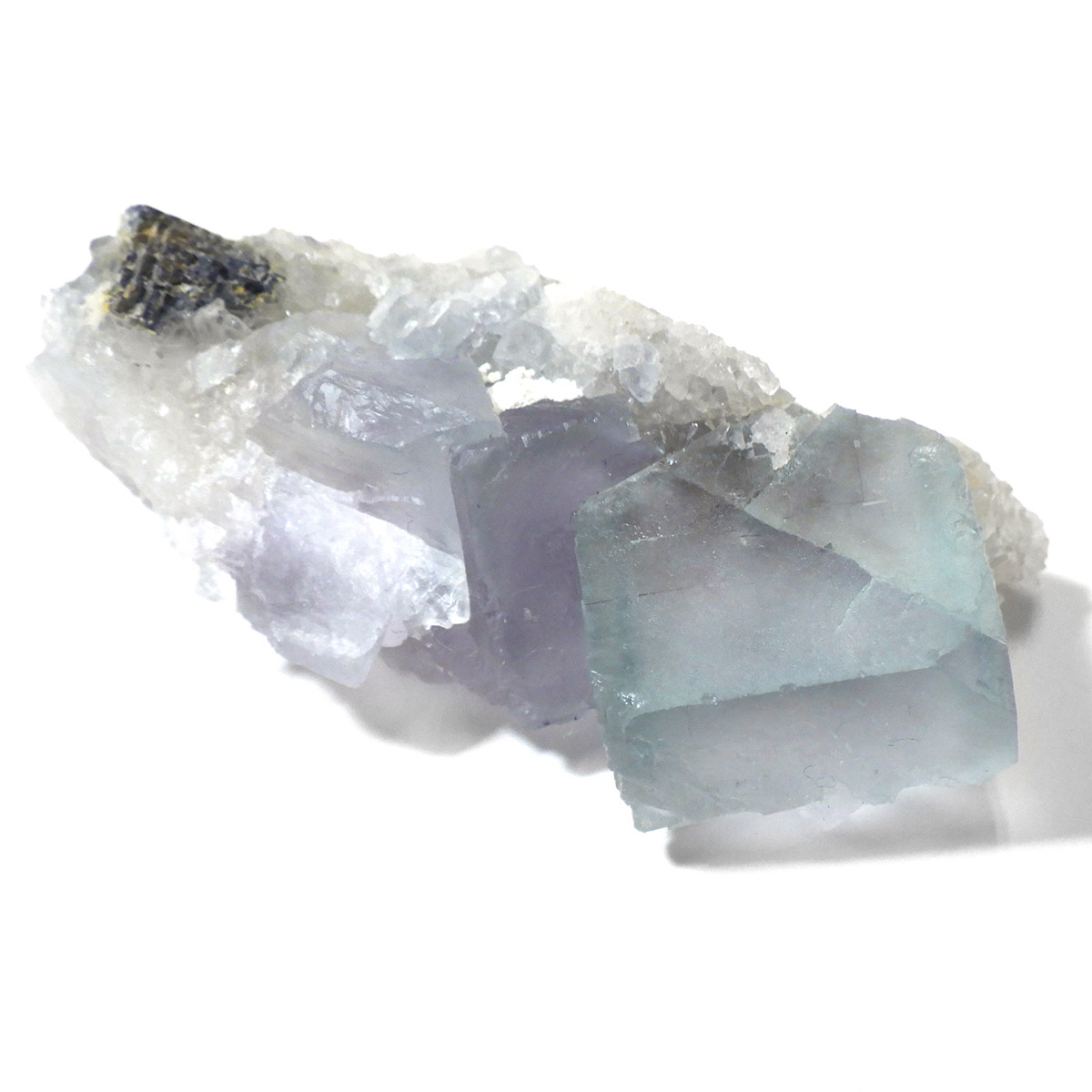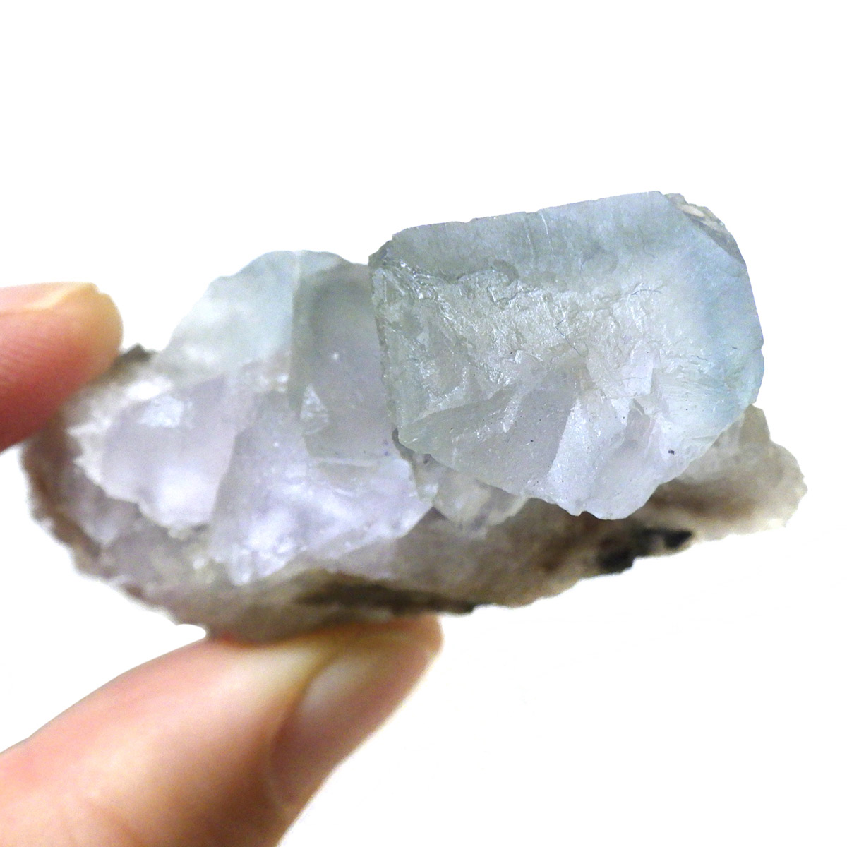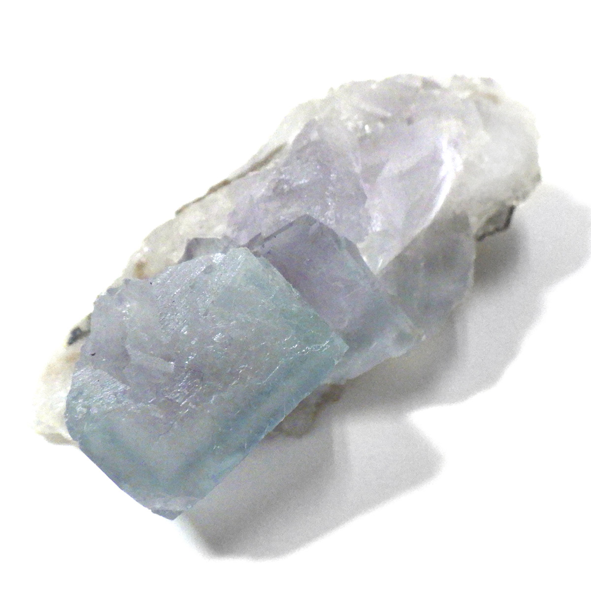 アメリカ・ニューメキシコ州産のブルーフローライト原石です。 カラーの豊富なフローライトの中でも、特にブルーとイエローは希少性が高いことで知られています。ニューメキシコ州産のブルーフローライトは、マットで淡く優しいブルーが大変珍しい希少な鉱物です。 角度によって色合いが変化し、結晶のグラデーションが非常に美しいです。 また、ブラックライトに反応し青色の蛍光を楽しめます。
