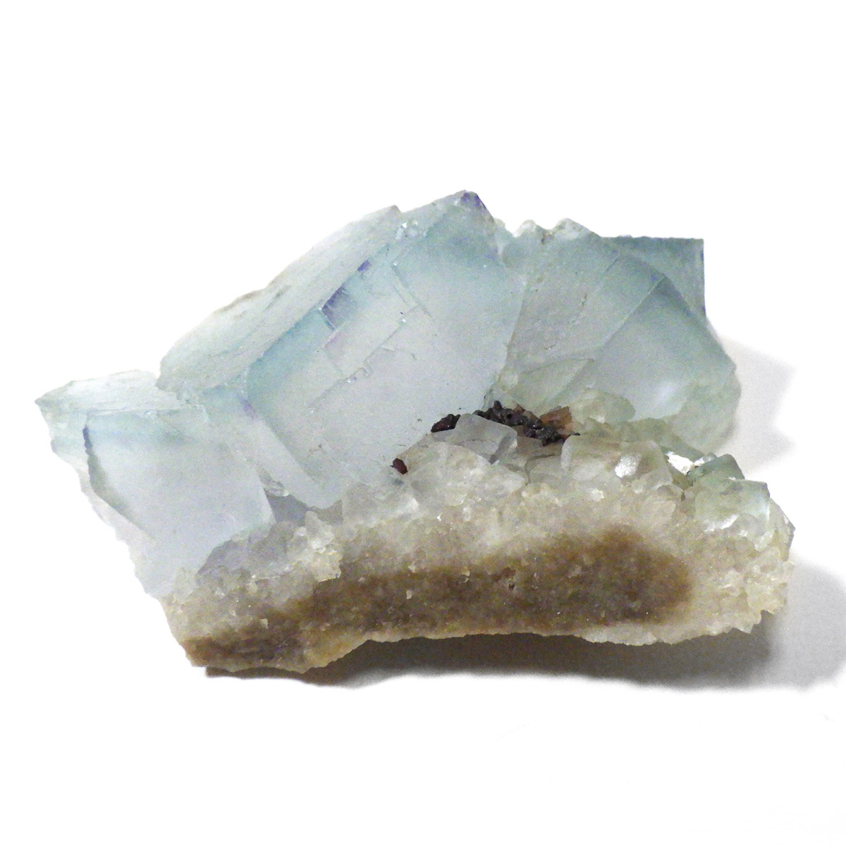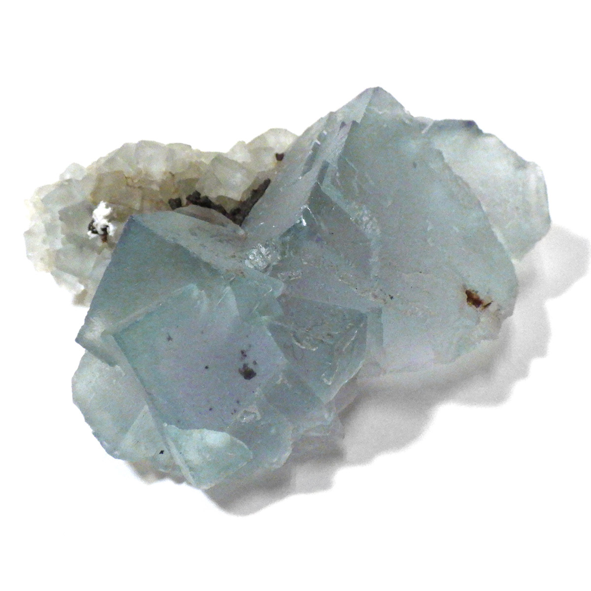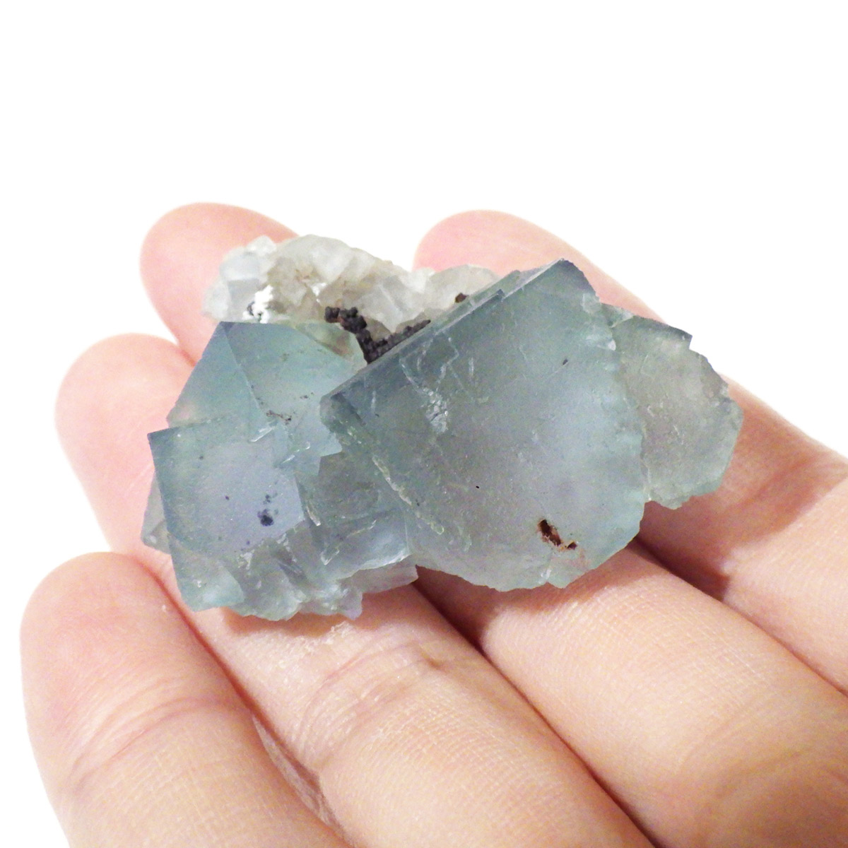 アメリカ・ニューメキシコ州産のブルーフローライト原石です。 カラーの豊富なフローライトの中でも、特にブルーとイエローは希少性が高いことで知られています。ニューメキシコ州産のブルーフローライトは、マットで淡く優しいブルーが大変珍しい希少な鉱物です。 角度によって色合いが変化し、結晶のグラデーションが非常に美しいです。 また、ブラックライトに反応し青色の蛍光を楽しめます。